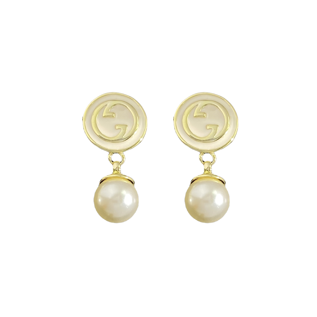 GGE039 Exaggerated luxury diamond round double G letter long pendant earrings