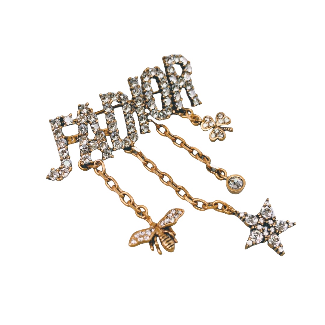 CDB066 Crystal Jadior letter with star clover bee charms chain tassels CD brooch pin