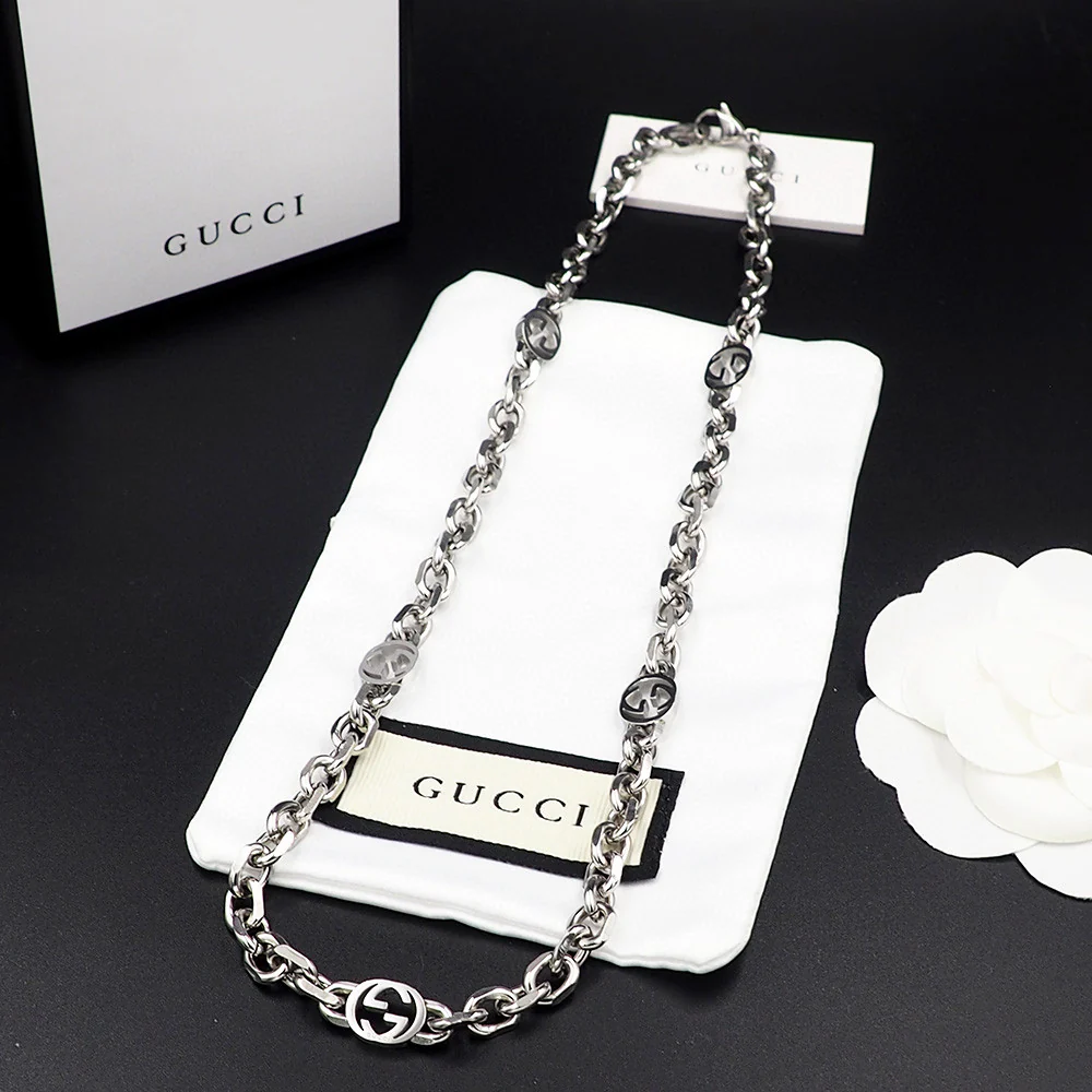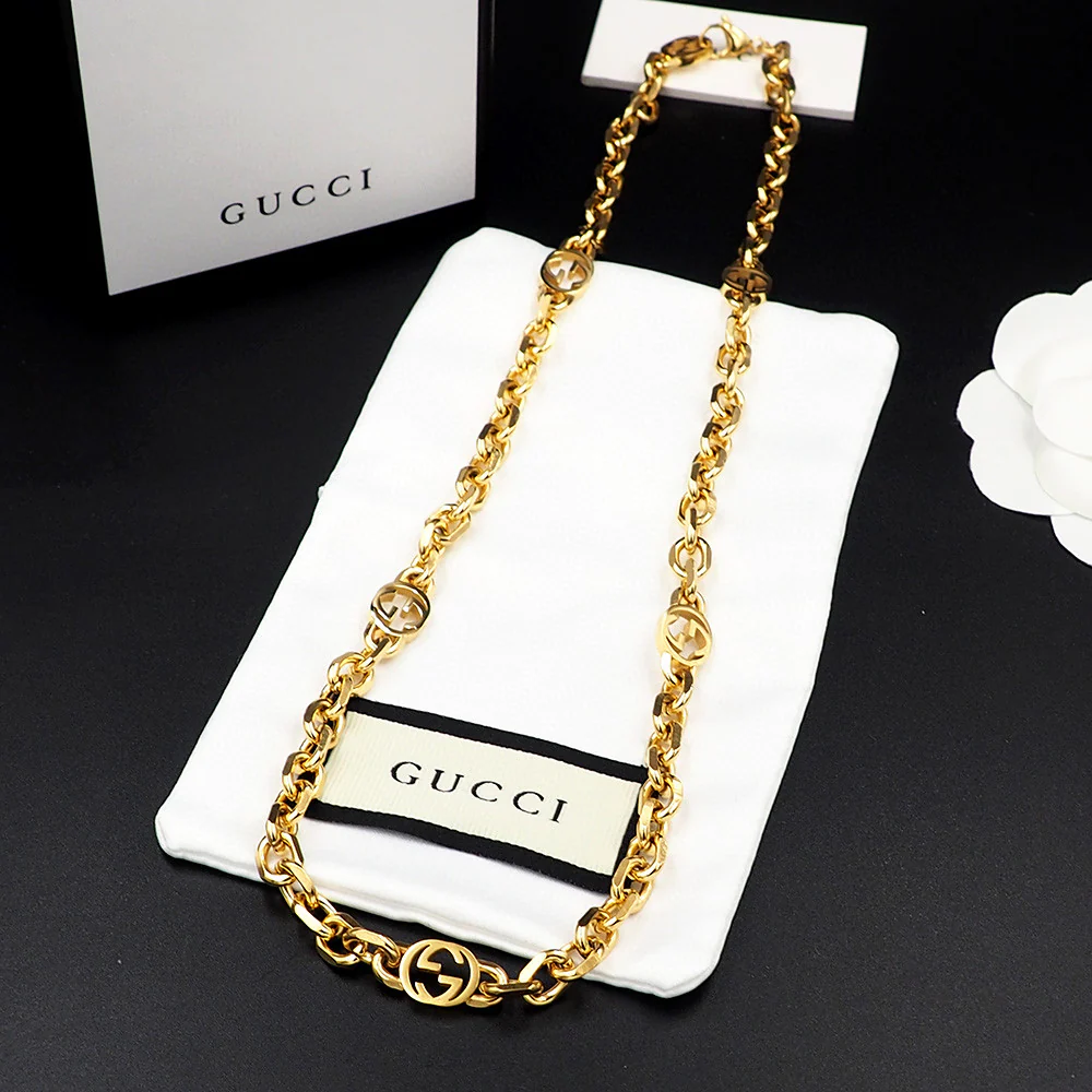 GGN039 Crystal diamond chain with GG bee pearl pendant necklace