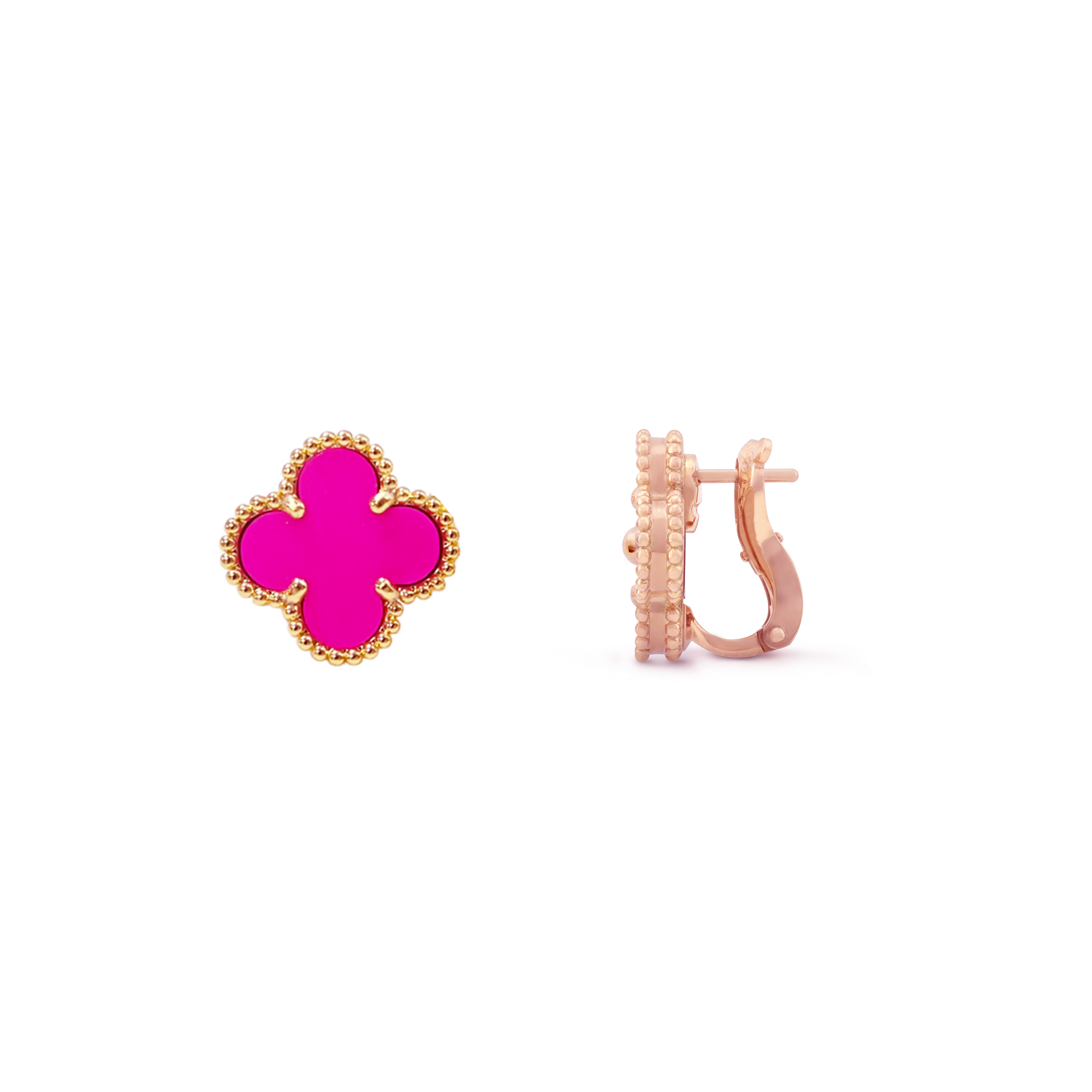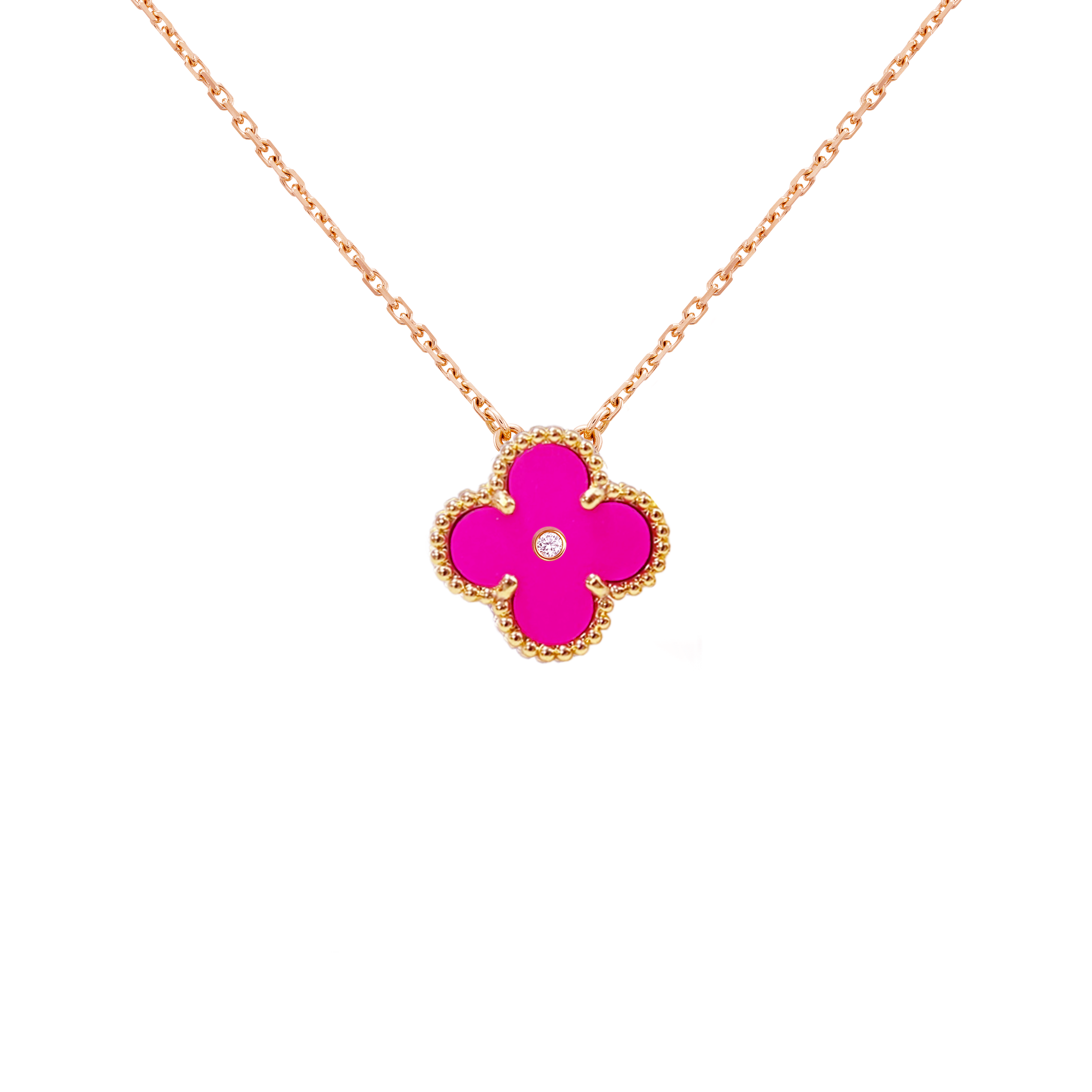 VCT021 VCA rose red stone Vintage Alhambra Pendant bracelet earring clip jewelry set