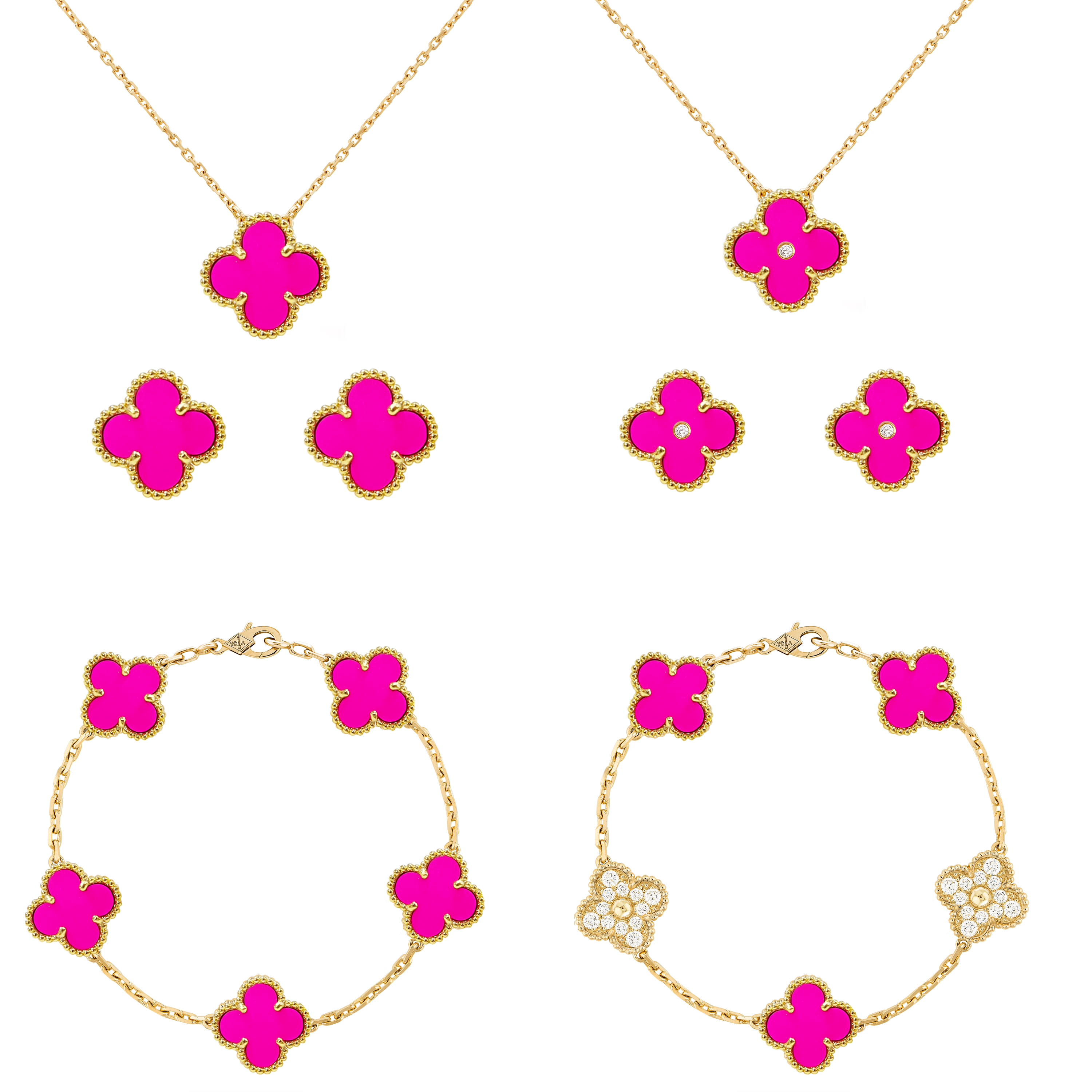VCT024 VCA Colored Stones Vintage Alhambra Pendant bracelet jewelry set