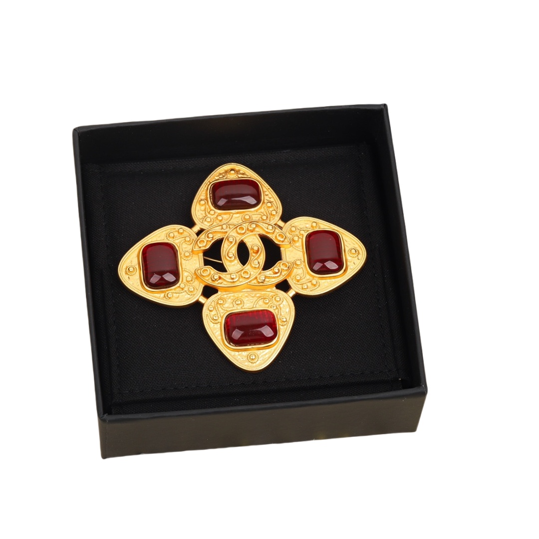 BCB489 Vintage Metal gold cross court Royal style brooch pin