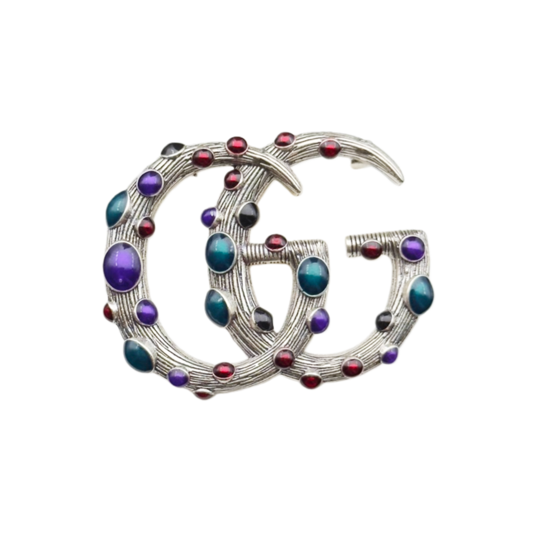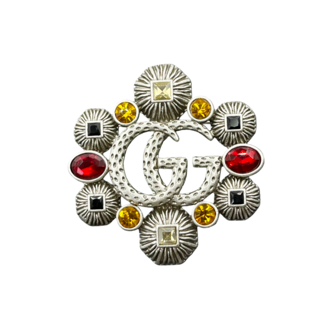 BCB244 Metal leather hollow-out with crystal pearl CC brooch pin