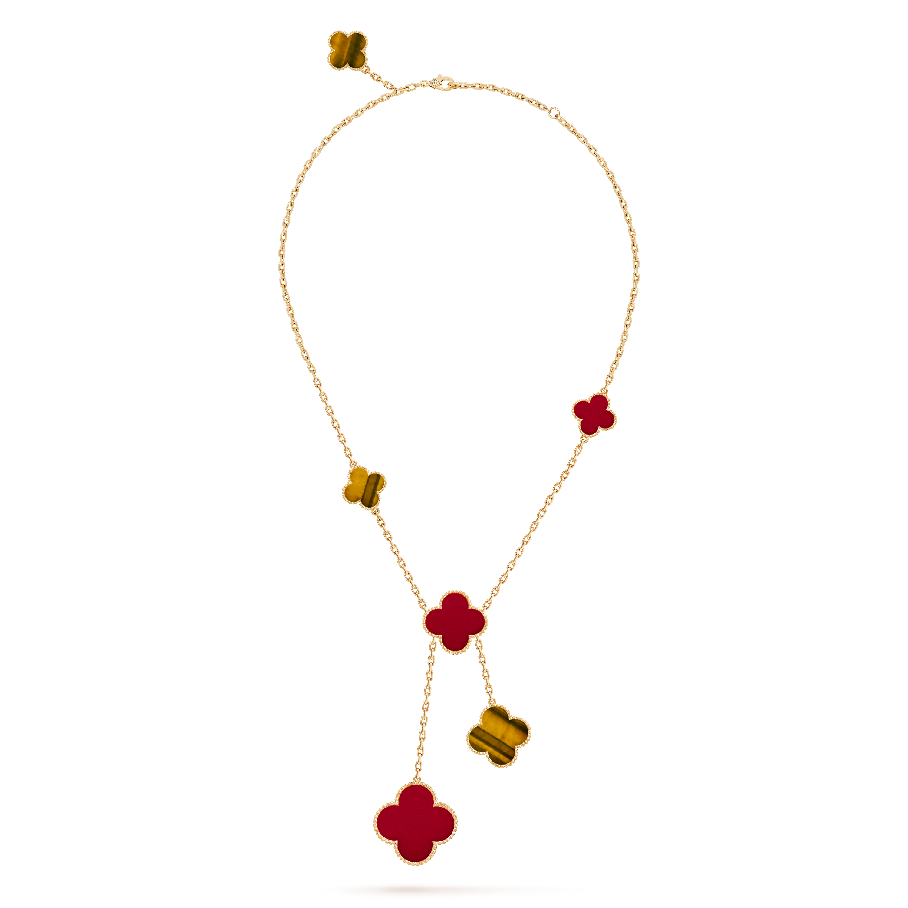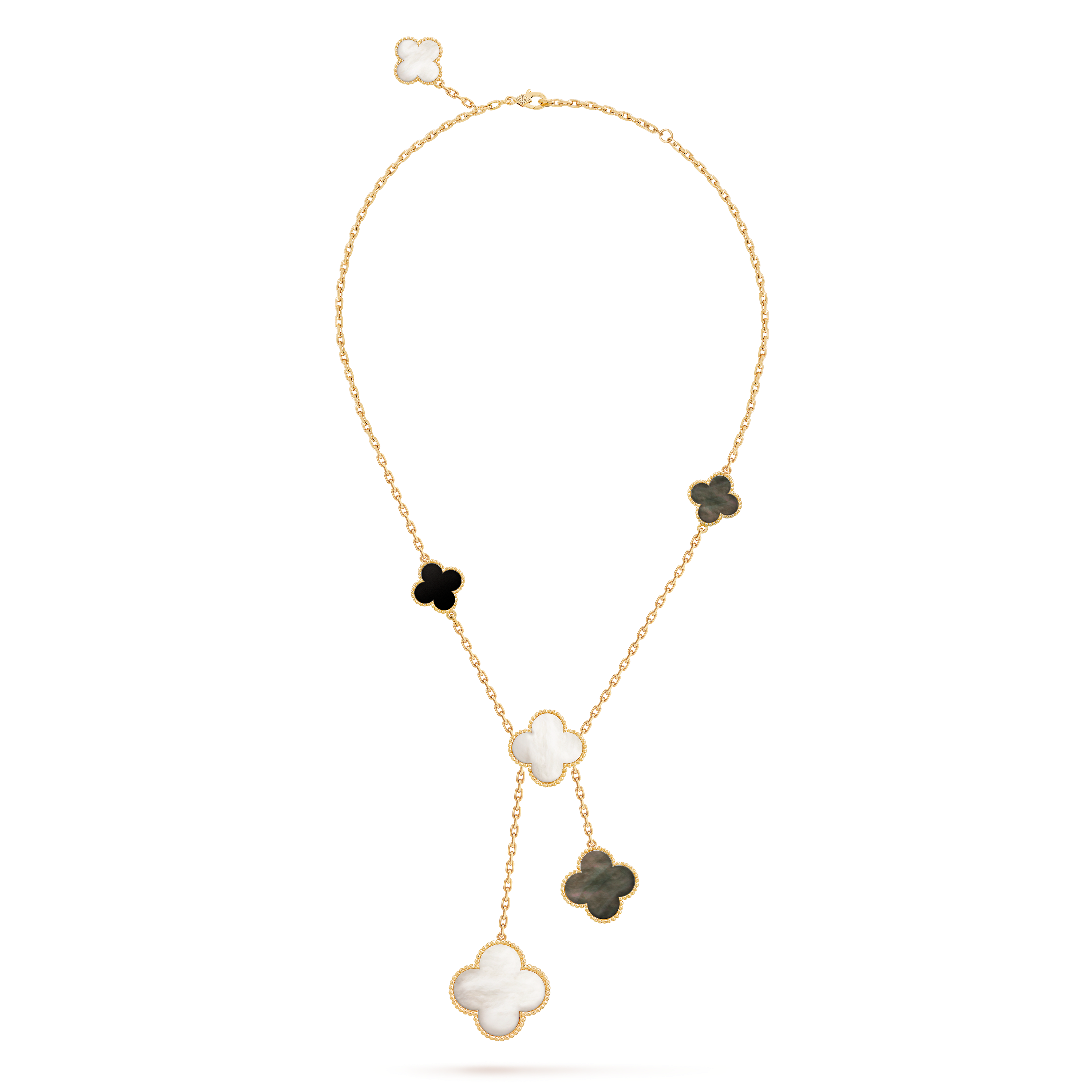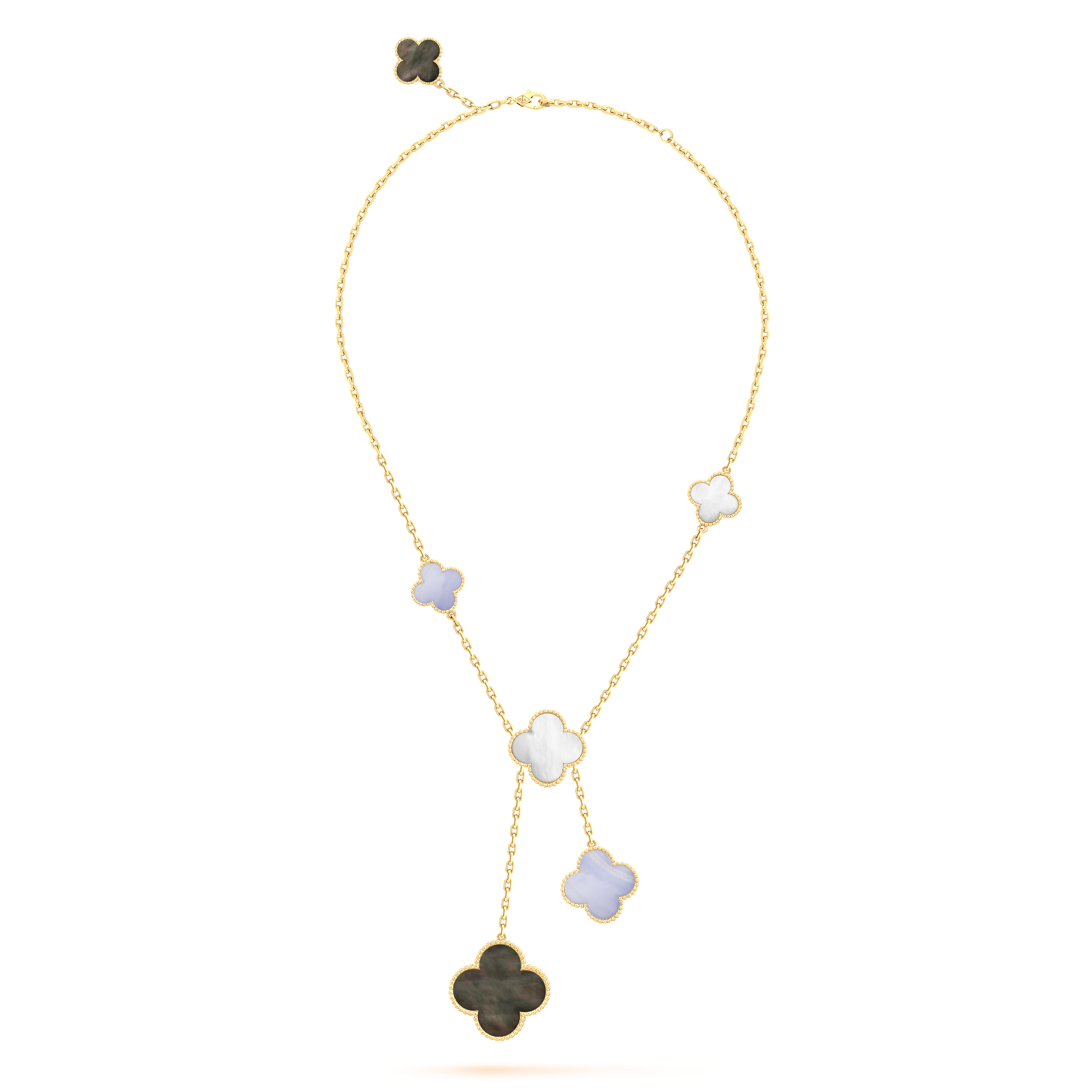 VCNV004 18k wite gold Pietersite Vintage Alhambra Long necklace 20 motifs