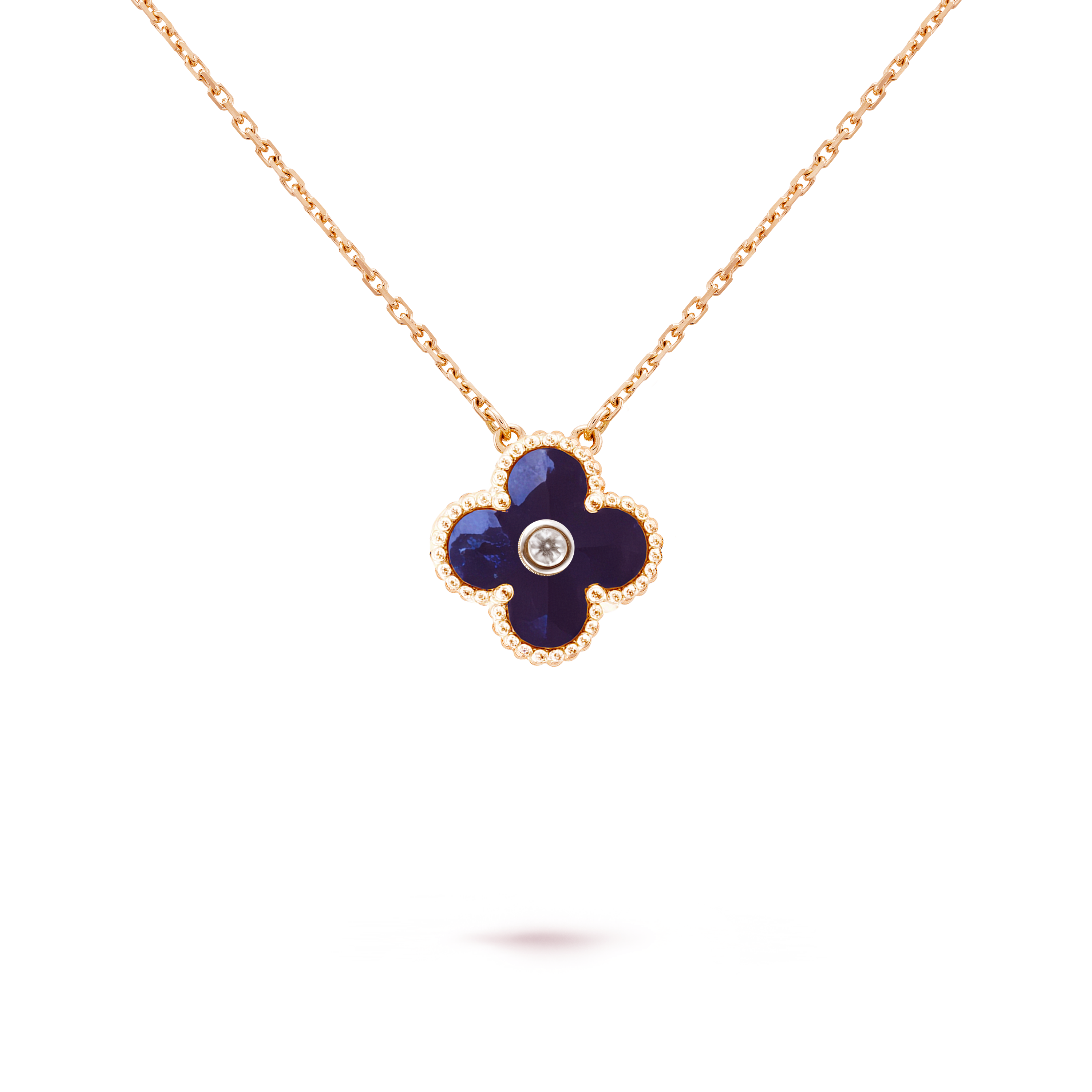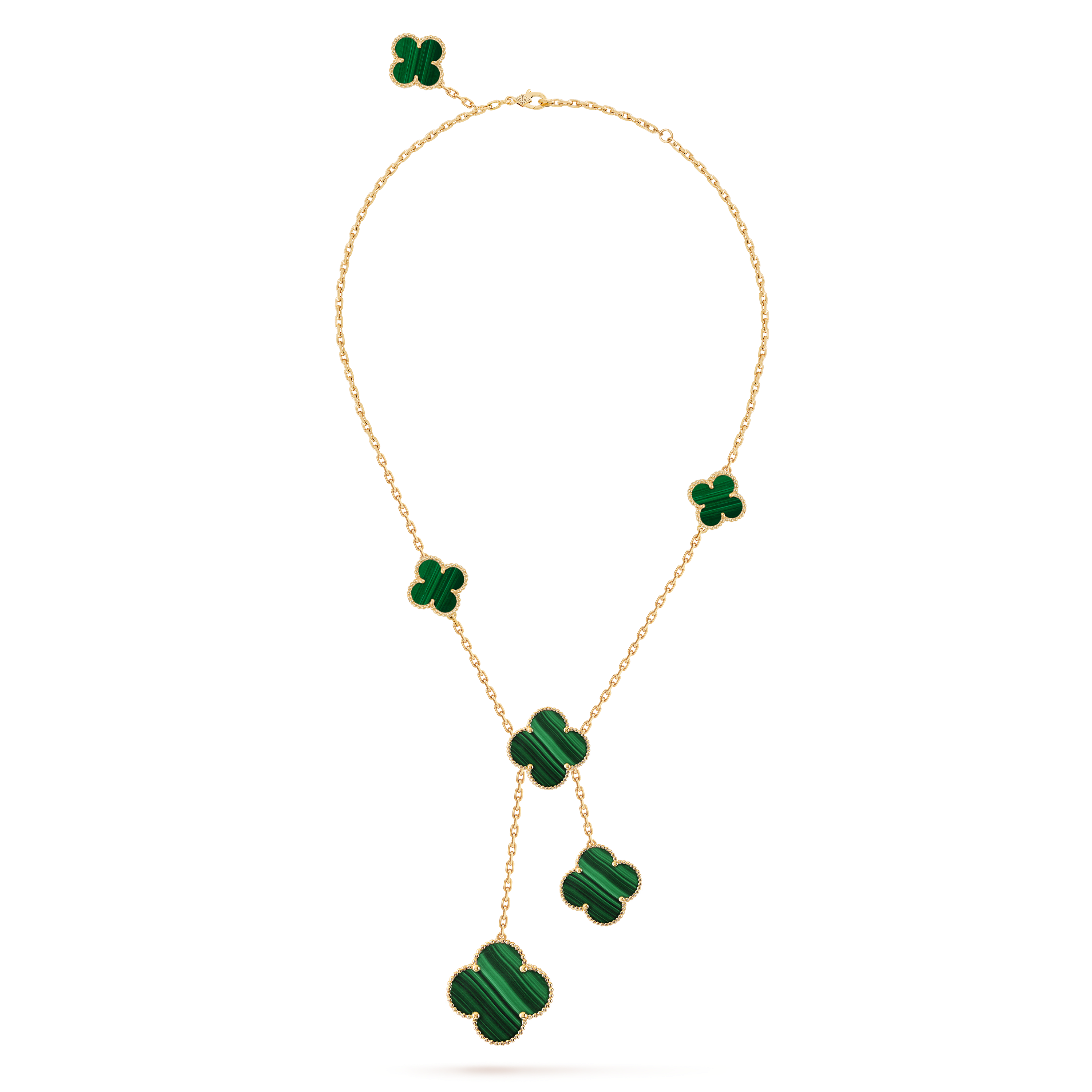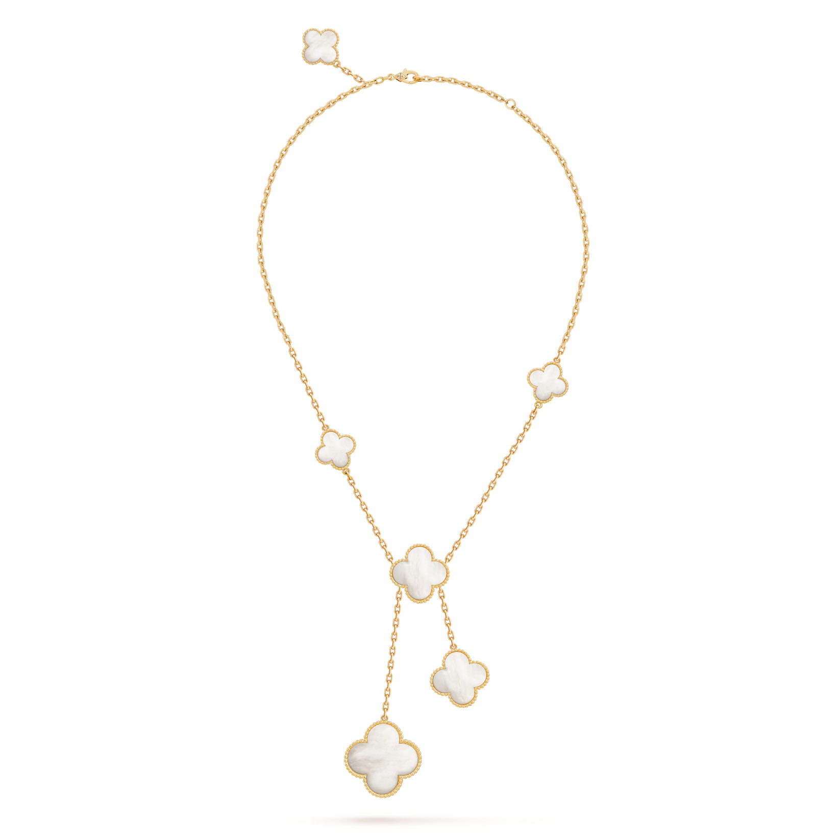 VCNV004 18k wite gold Pietersite Vintage Alhambra Long necklace 20 motifs