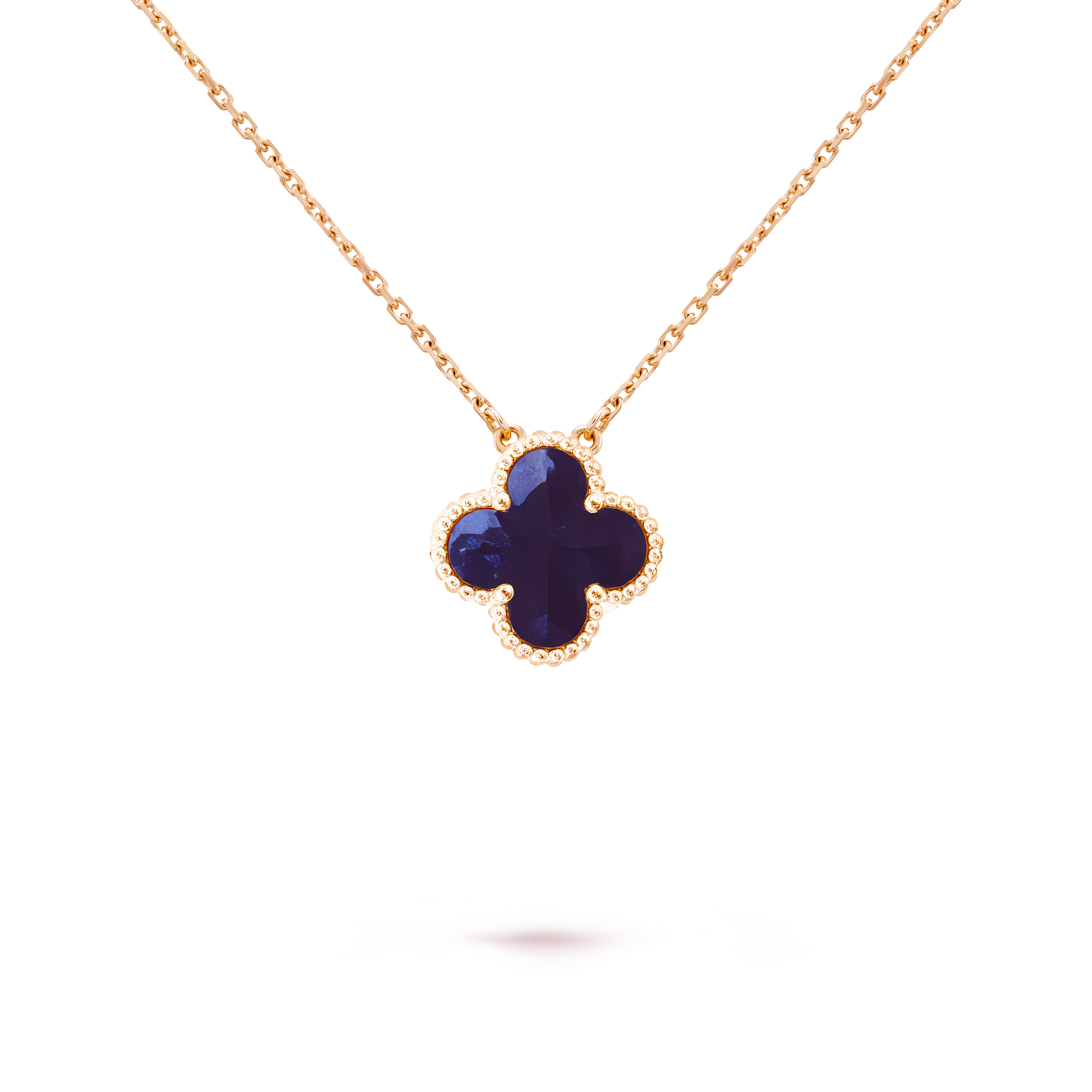 VCNV005 18K Rose Gold Silver Obsidian 20 Motifs Vintage Alhambra Necklace