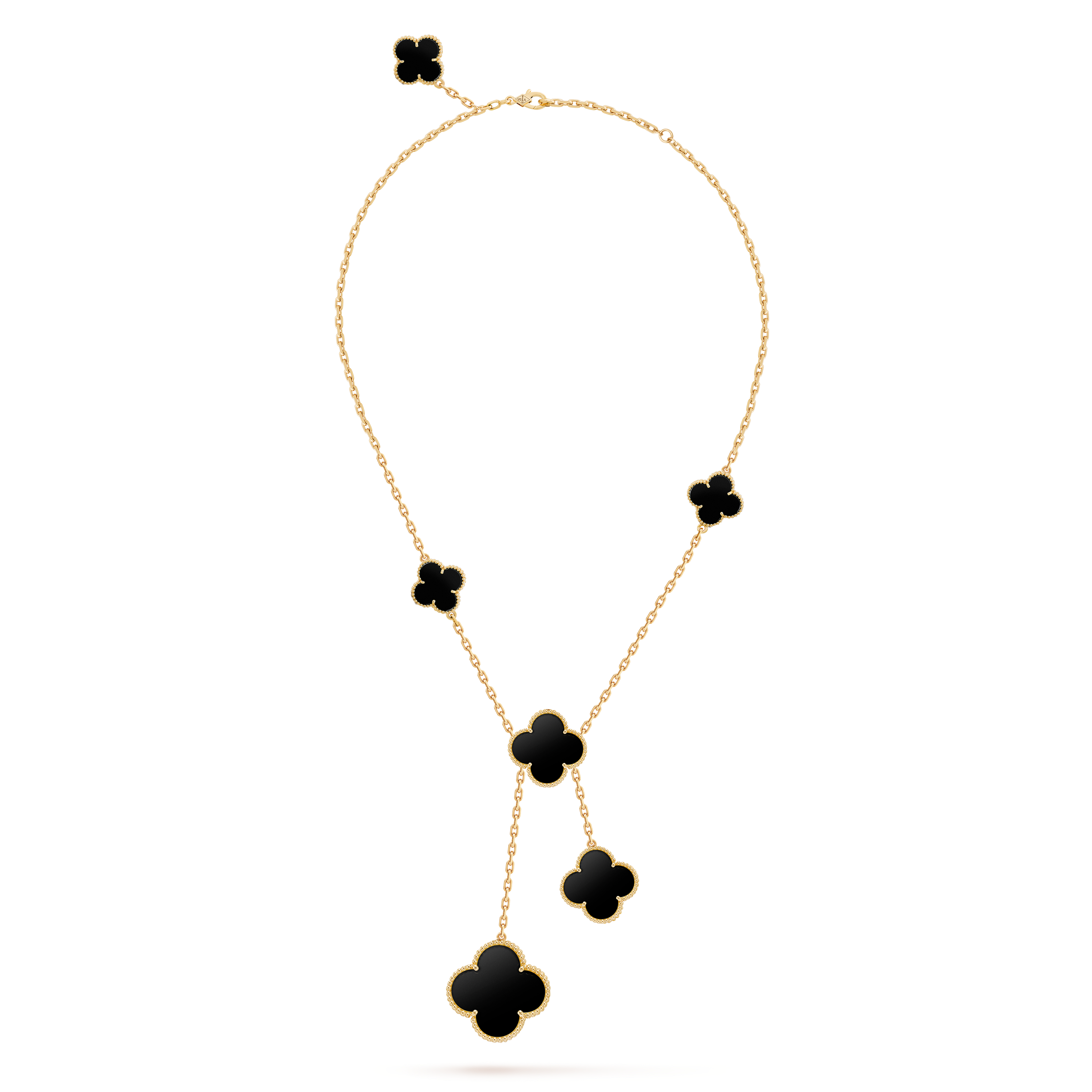 VCNV002 18k Gold Vintage Alhambra necklace 10 motifs Silver obsidian Gemstone