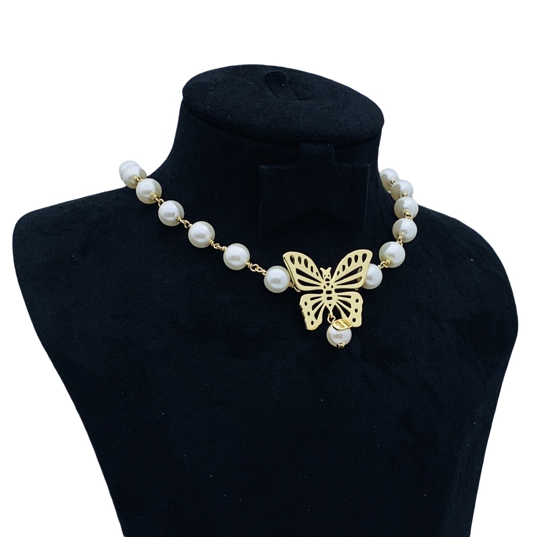 CDN151 High quality Pearl CD Butterfly Choker Necklace