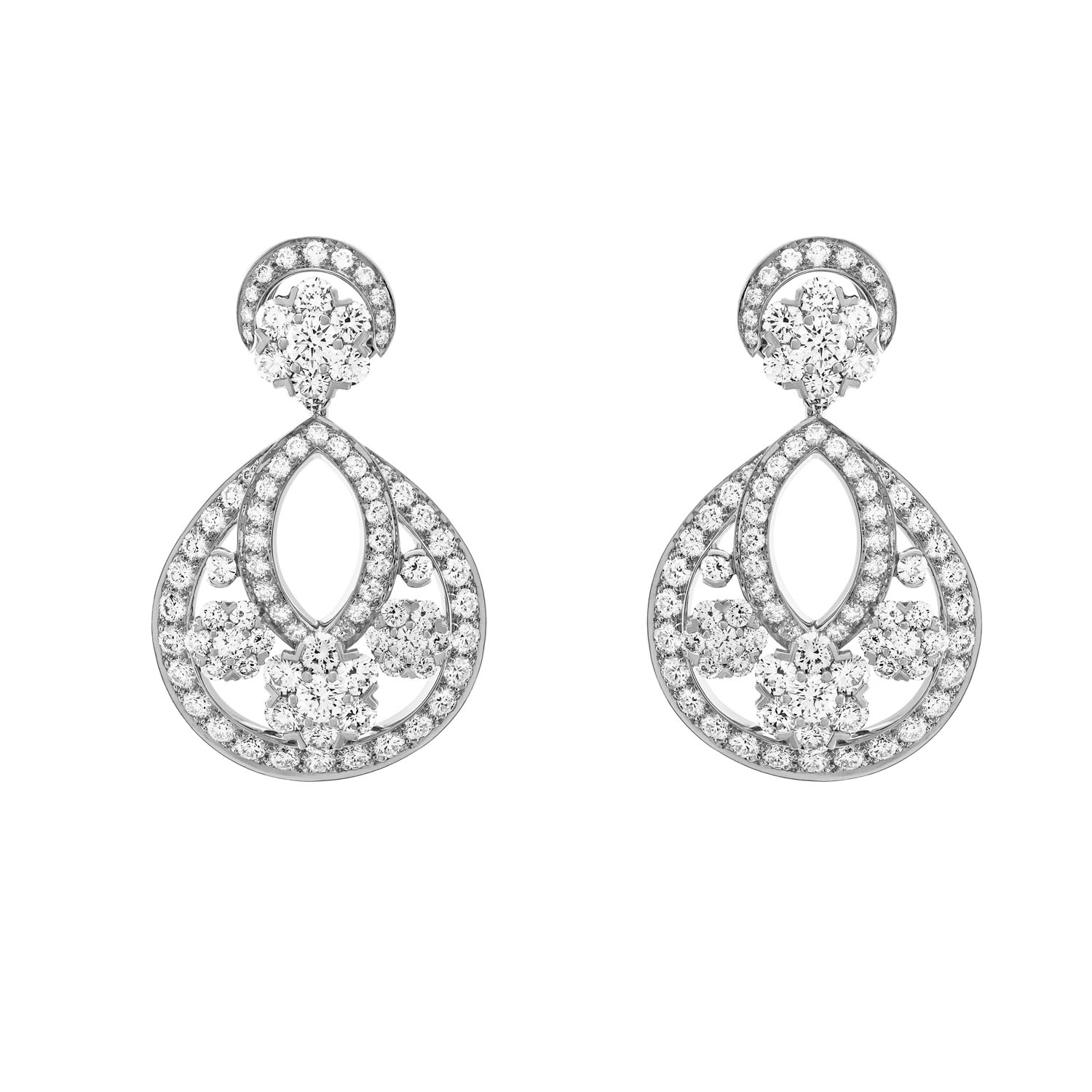 VCES008 18k white gold VCA Snowflake earring clip and snowflake pendant necklace