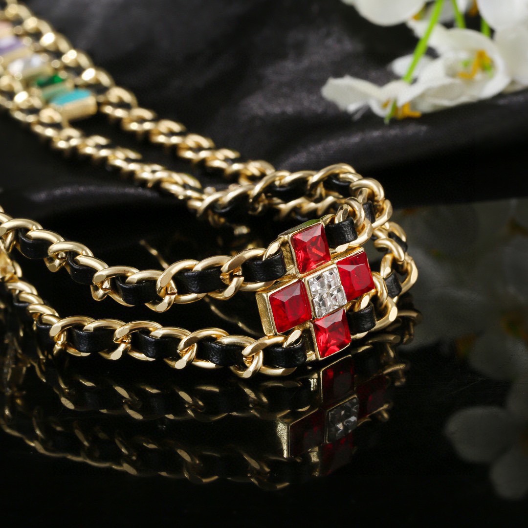 CCW136 Metal chain with Zircon cc logo and black stone waist chain belt