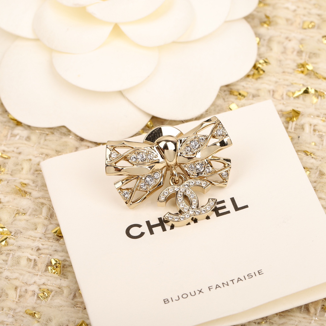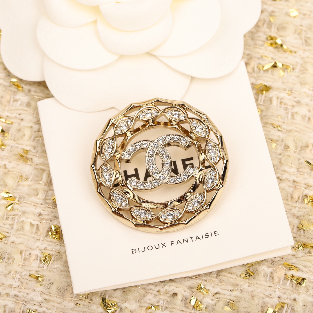 BCB442 24B crystal Four Leaf Clover cc logo Brooch pin