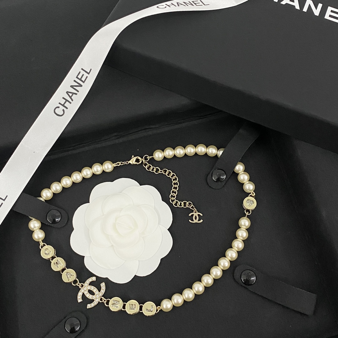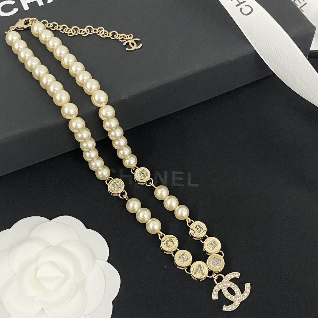 CCN552 24B pearl chain Rhinestone cc logo pendant necklace