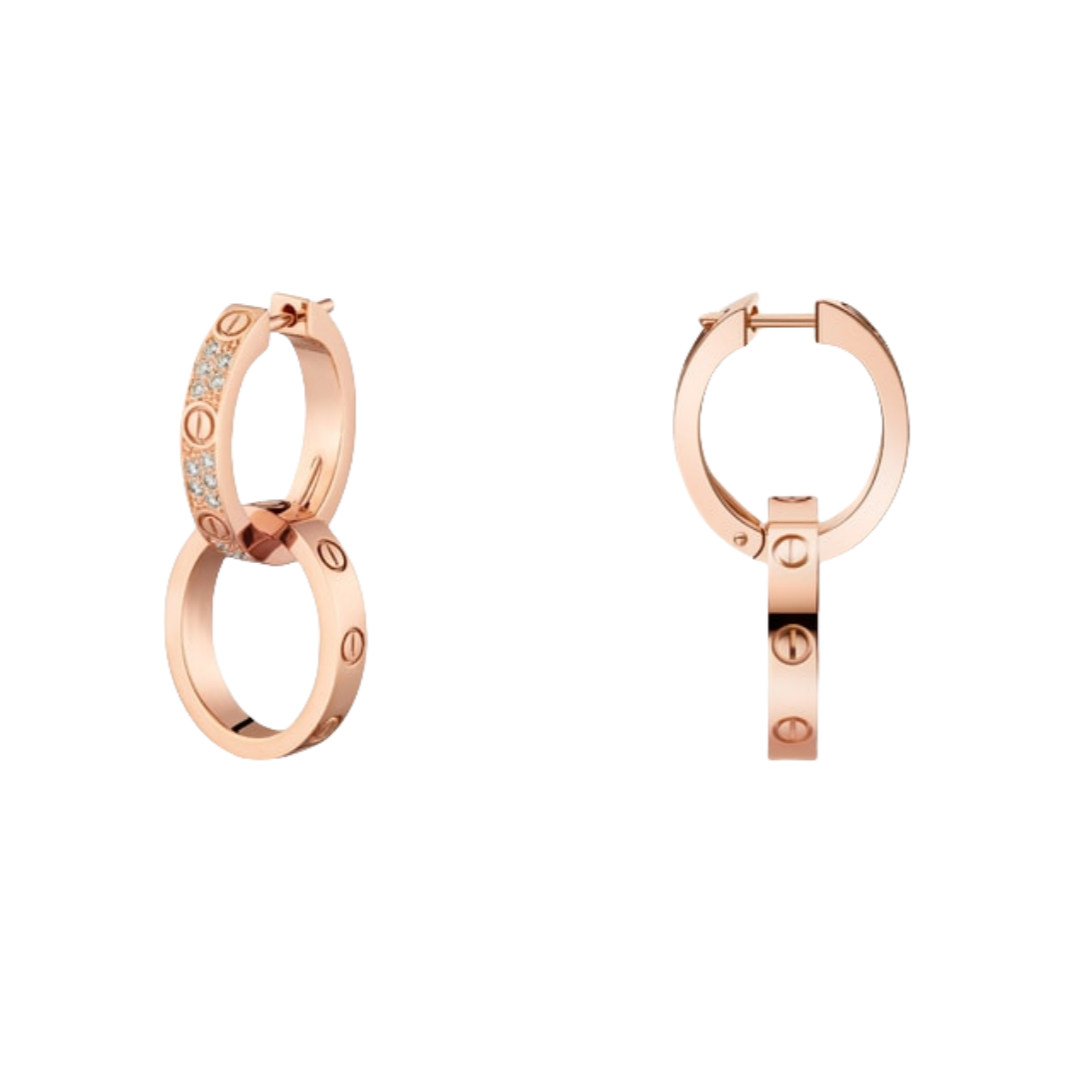 CTEV055 18K Gold Cartier LOVE earrings, multiwear, half-paved