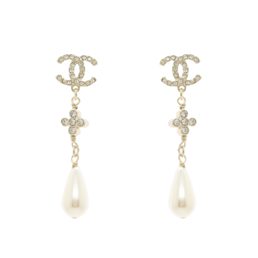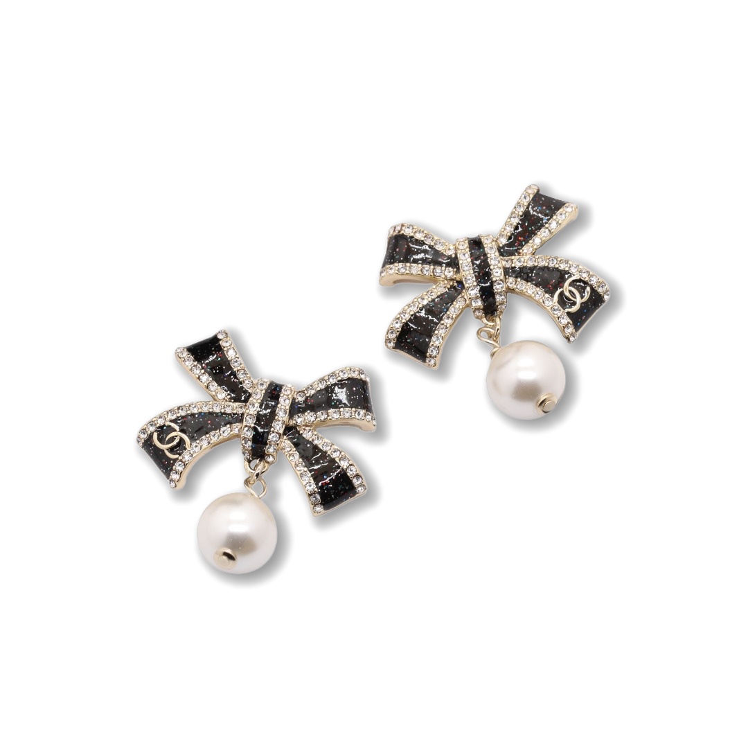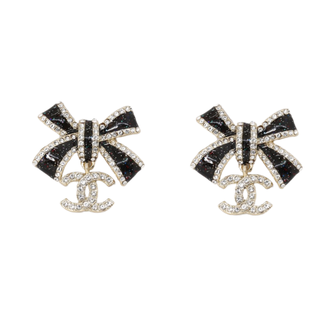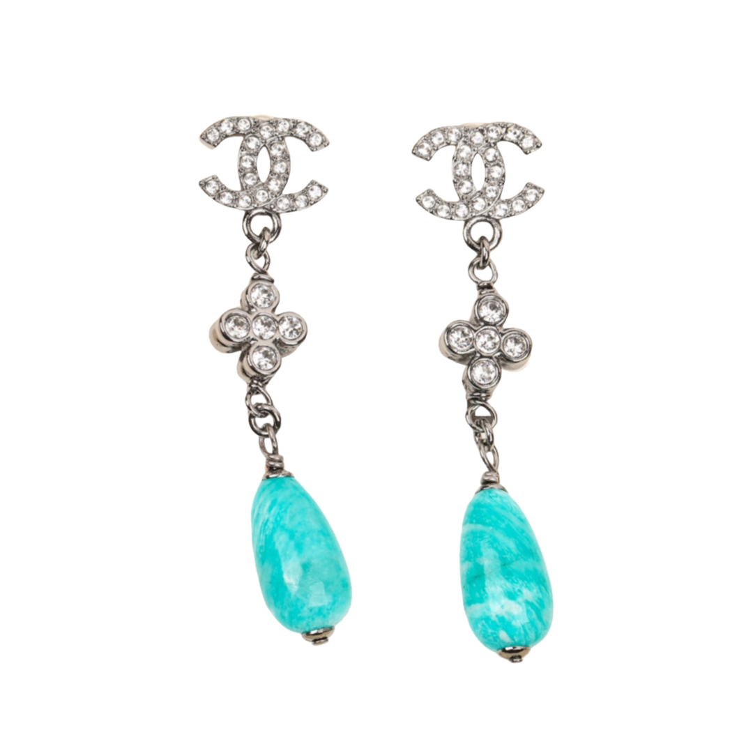 CCE371 Chanel Double C rhinestone square acrylic pendant asymmetrical pattern earrings