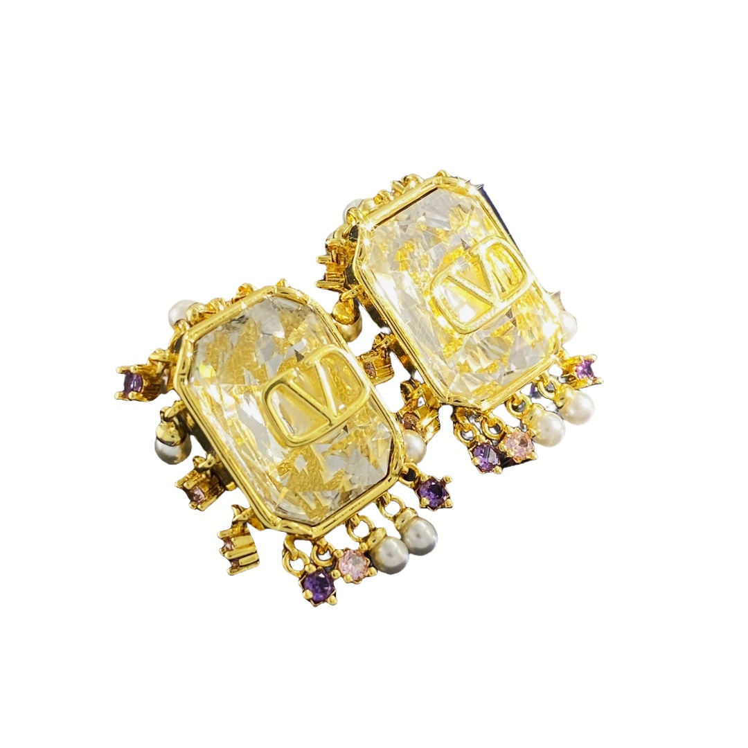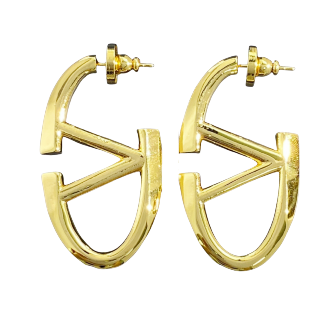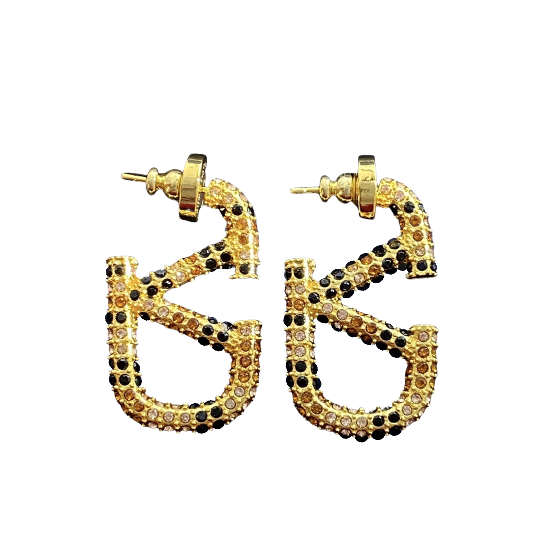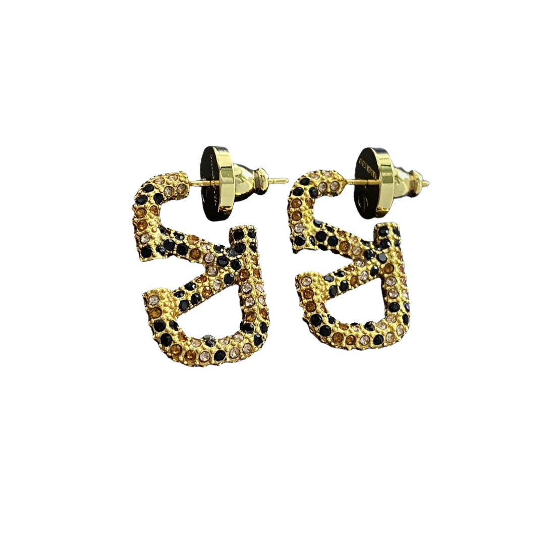VTE024 Valentino Garavani Gold VLogo Signature Earrings in metal and crystal