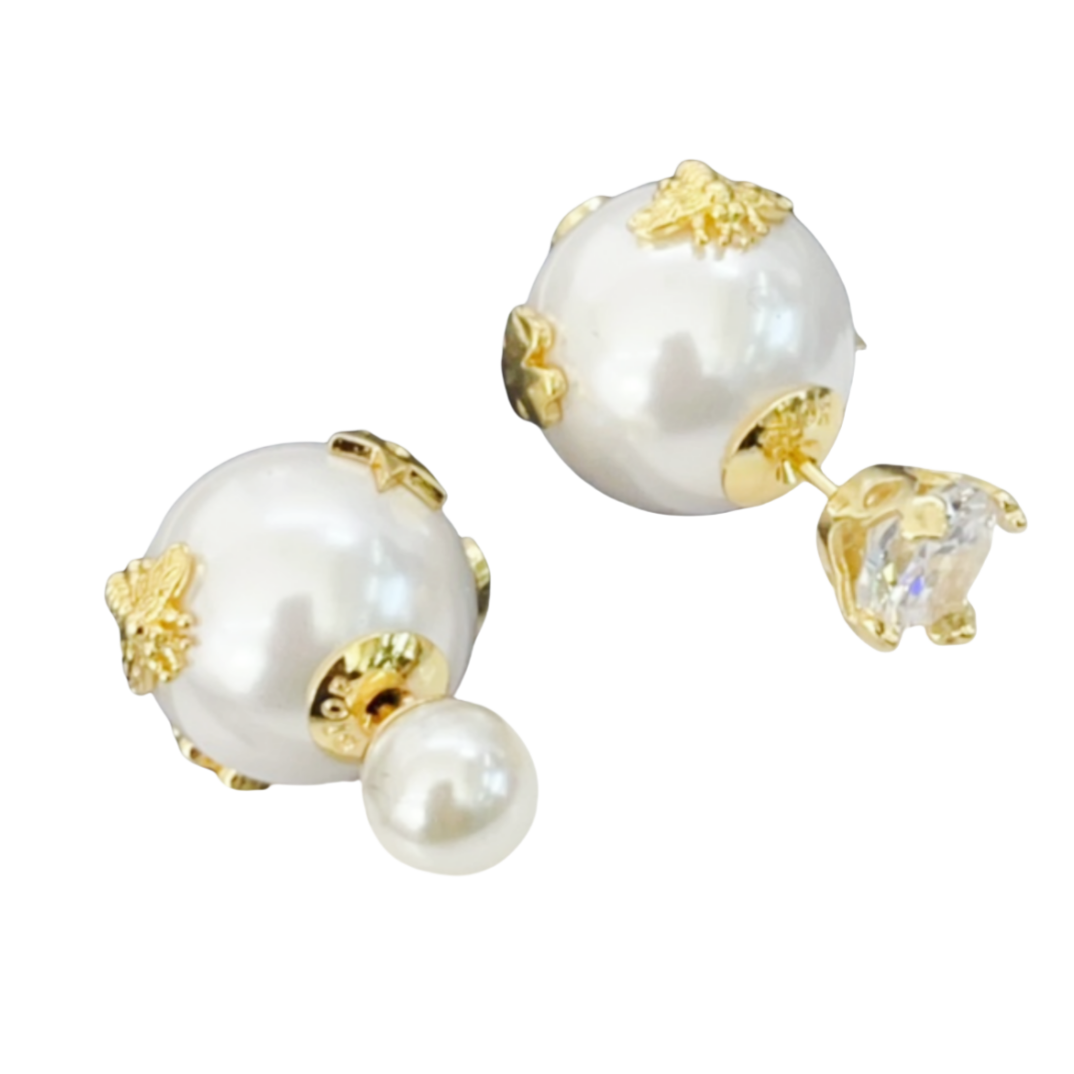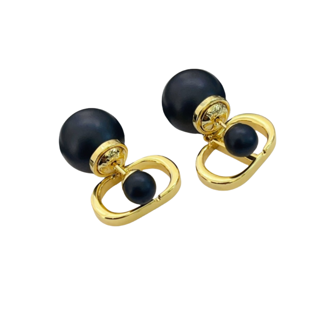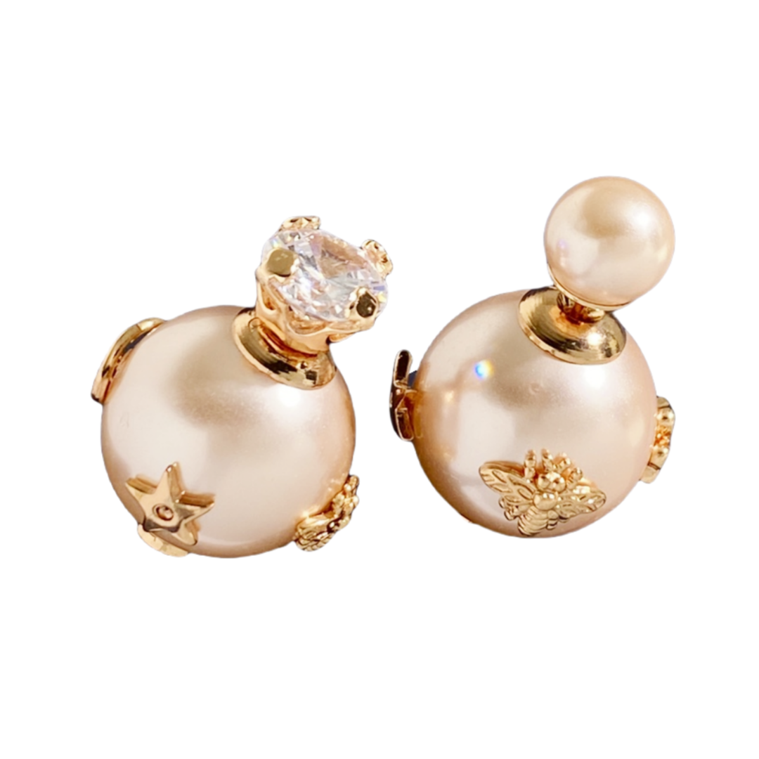 CDE198 DIOR letter charms Tribales earrings in metal gold finish and crystal pearl