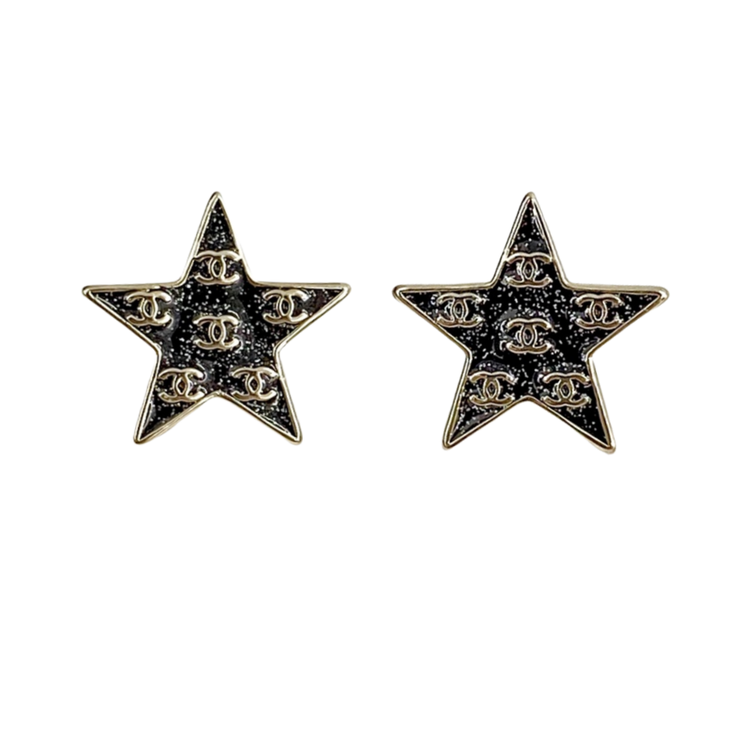 CCE250 24C star black enamel sparkle cc logo stud earrings