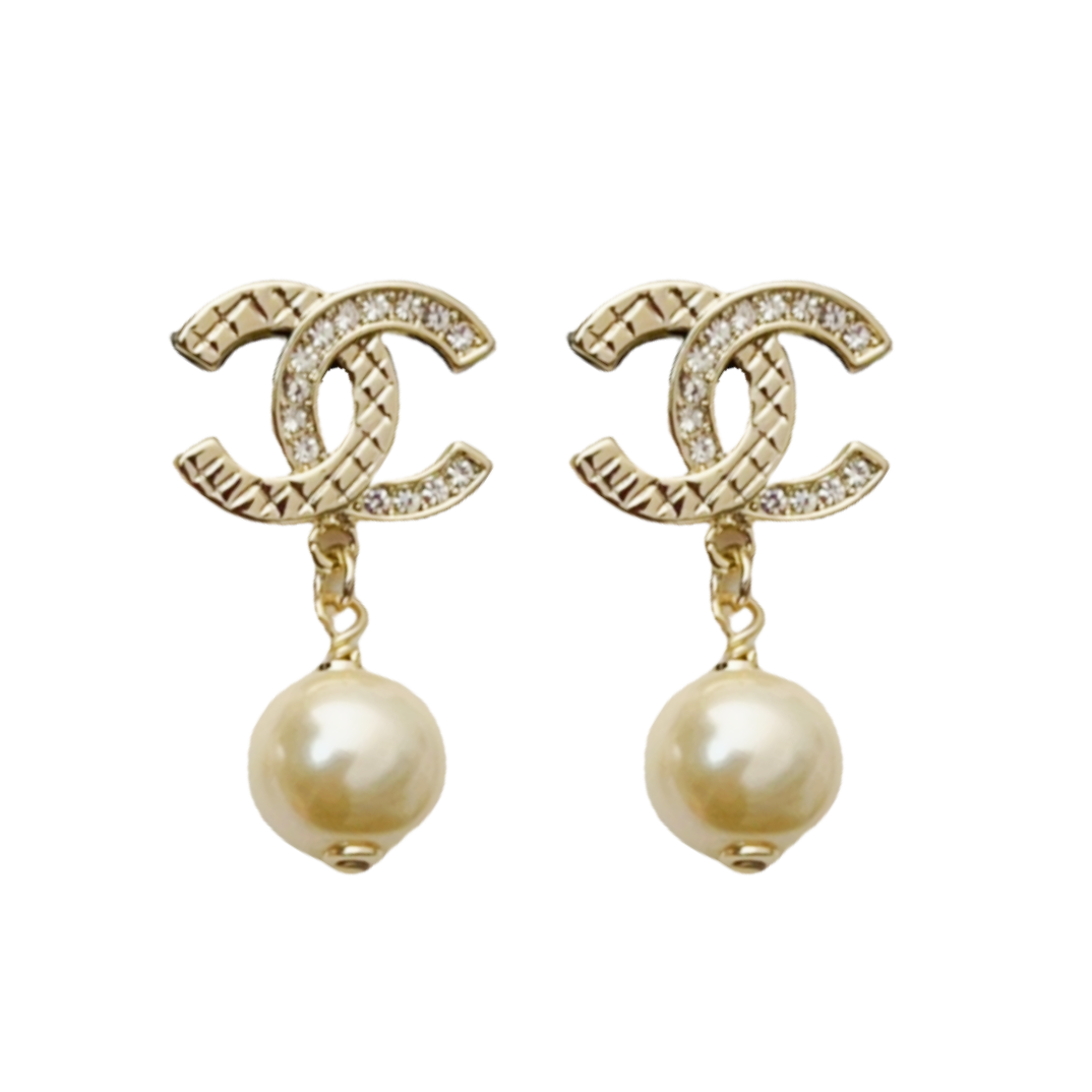 CCE118 Quilted and crystal CC logo drop pearl earring