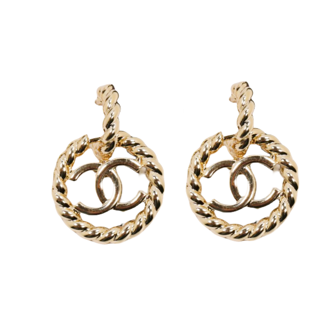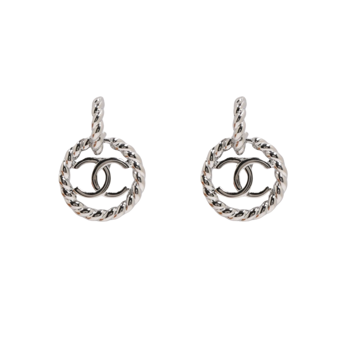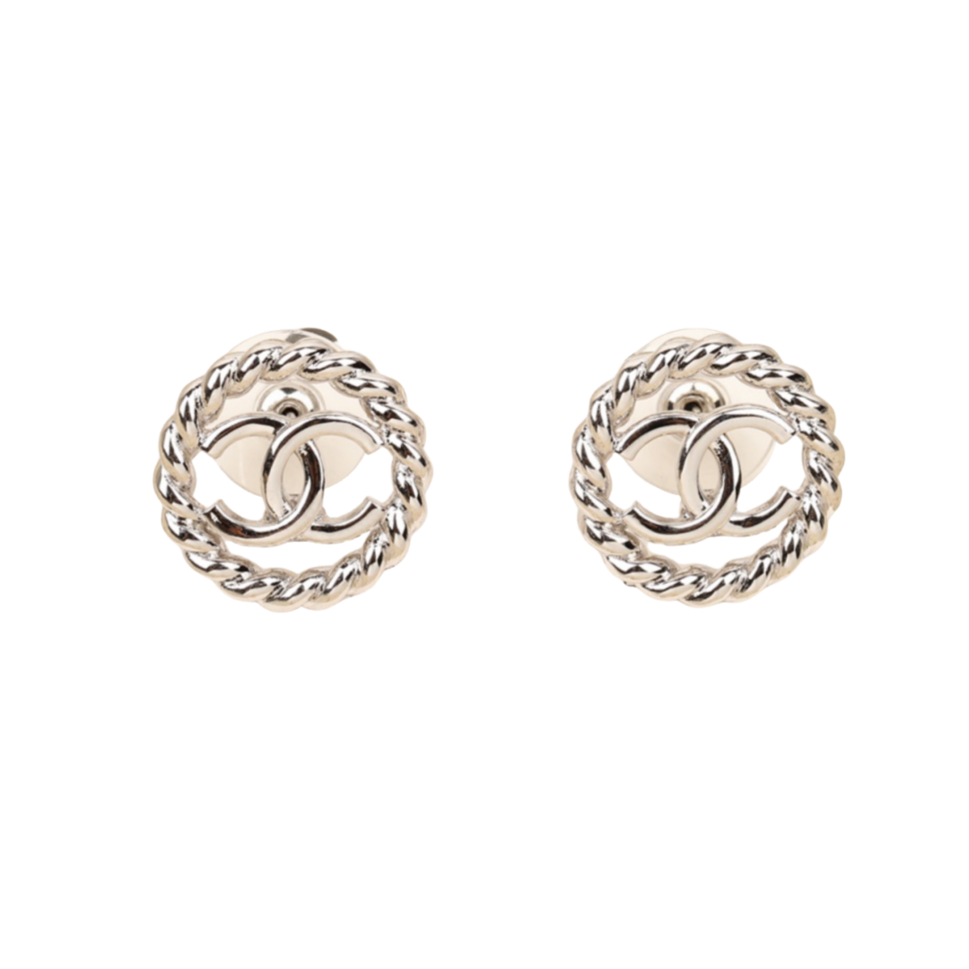 CCE139 Chanel Twist metal round cc logo stud earrings
