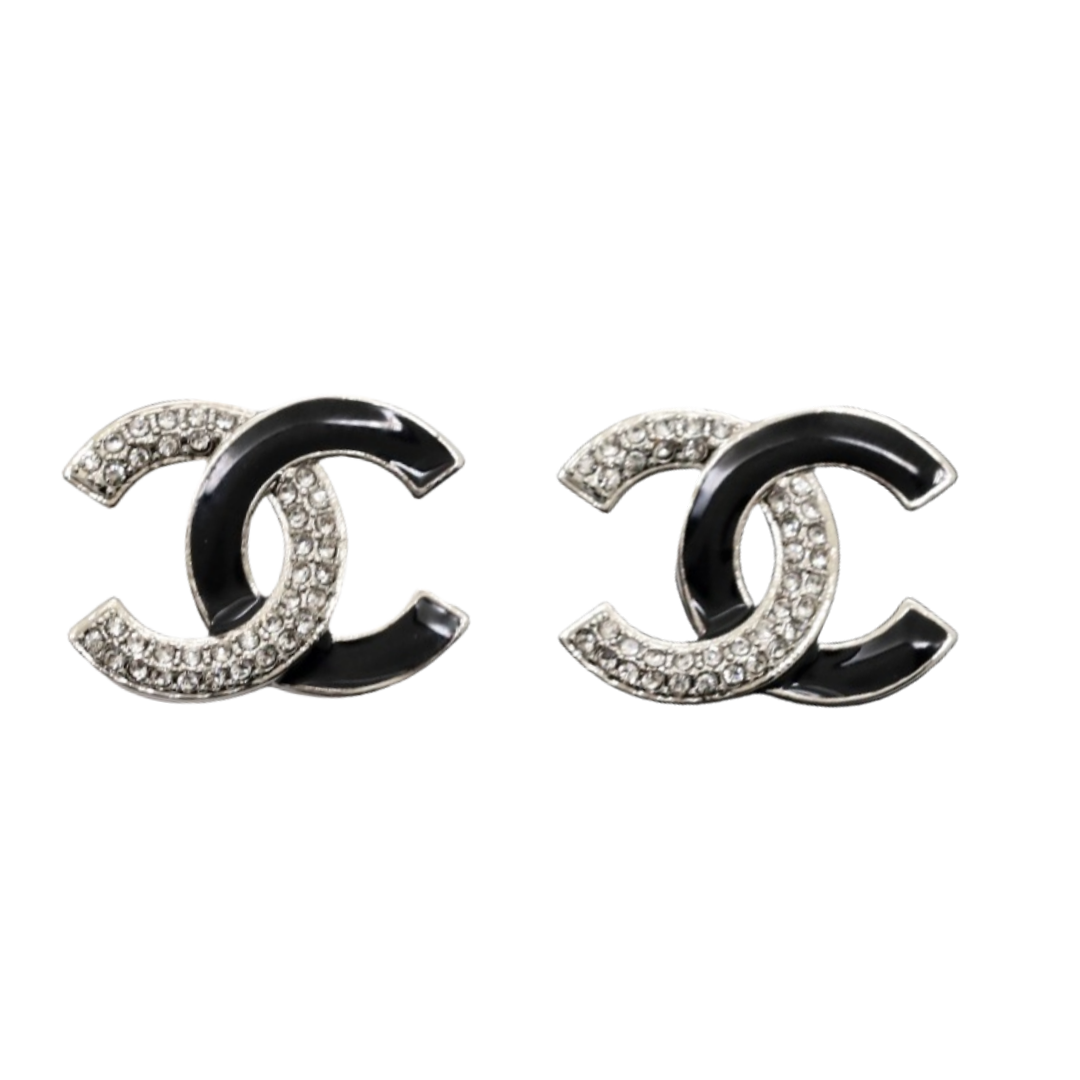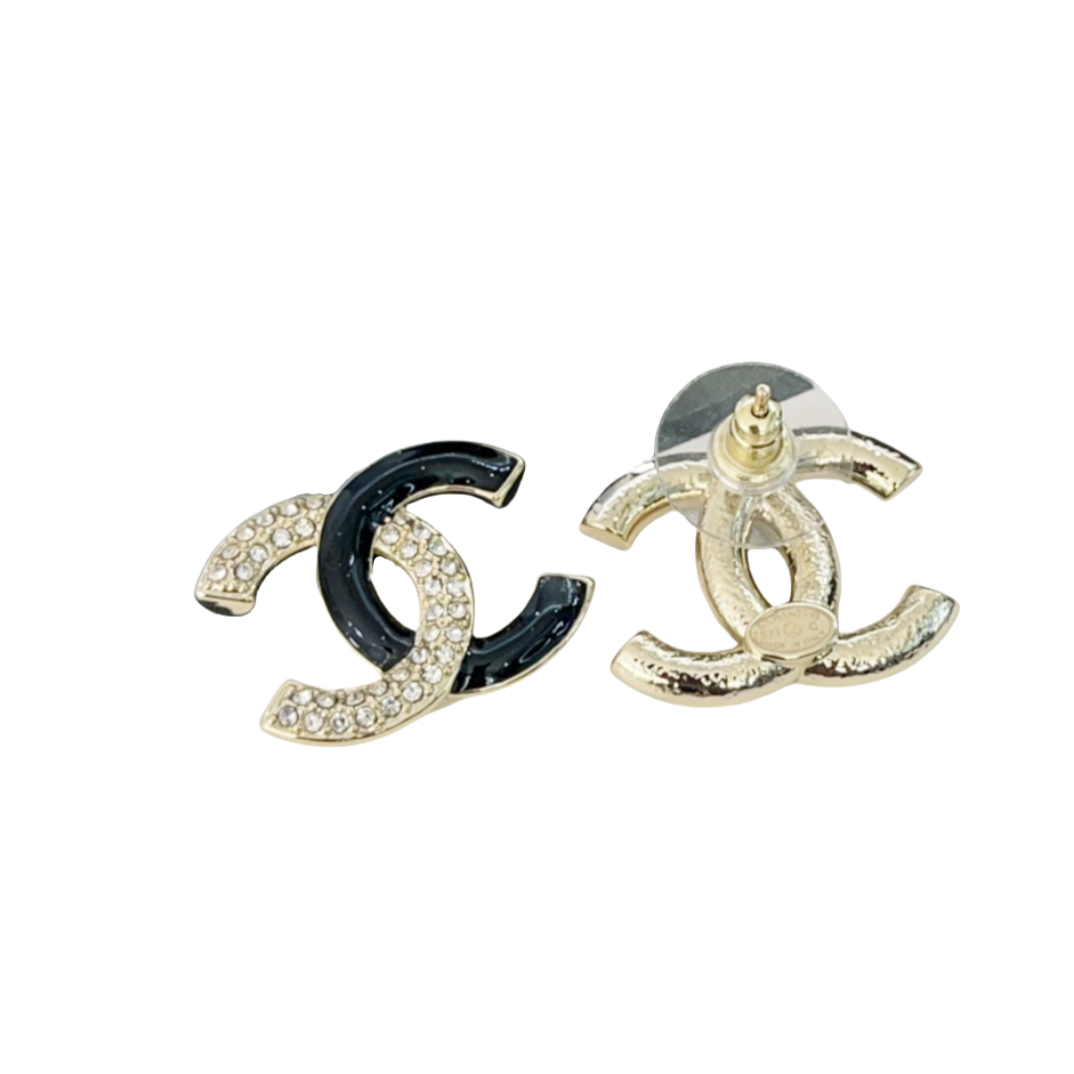CCE137 Chanel crystal and black enamel star CC logo stud earring