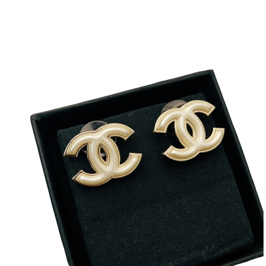 CCE213 CC Logo four leaf clover camellia flower earrings