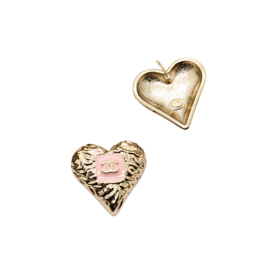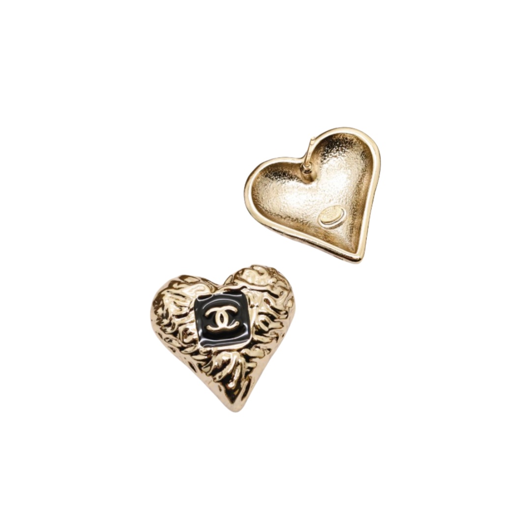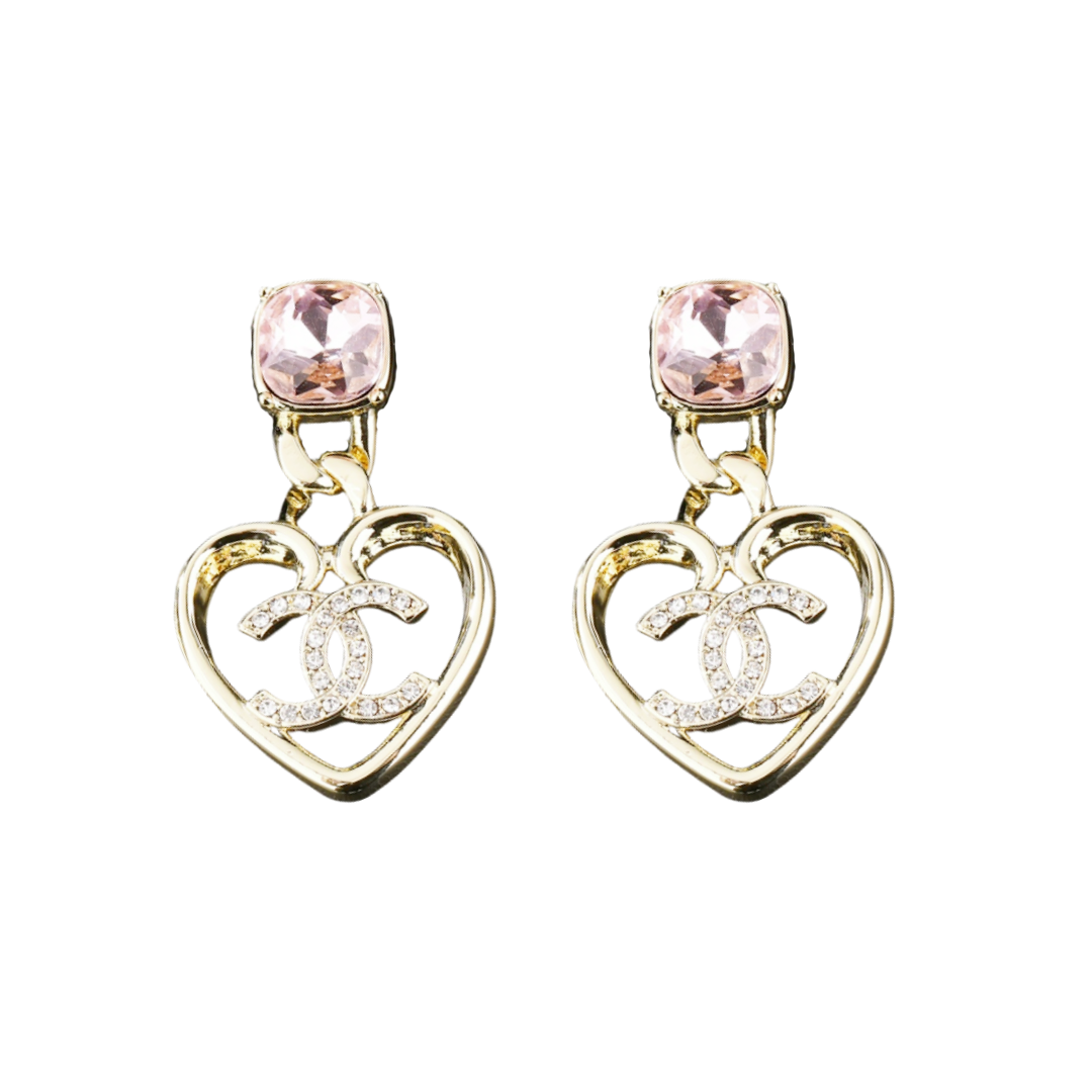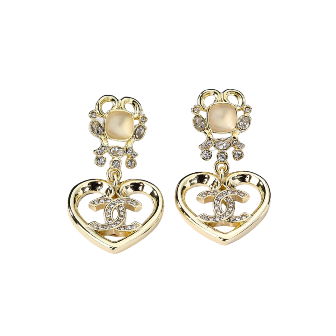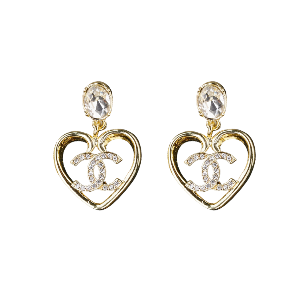 CCE167 Metal clover and crystal heart CC logo stud earrings