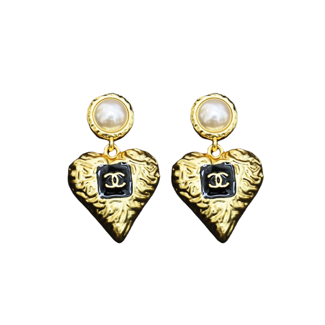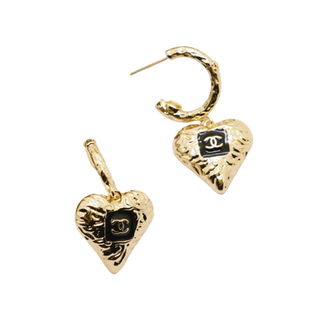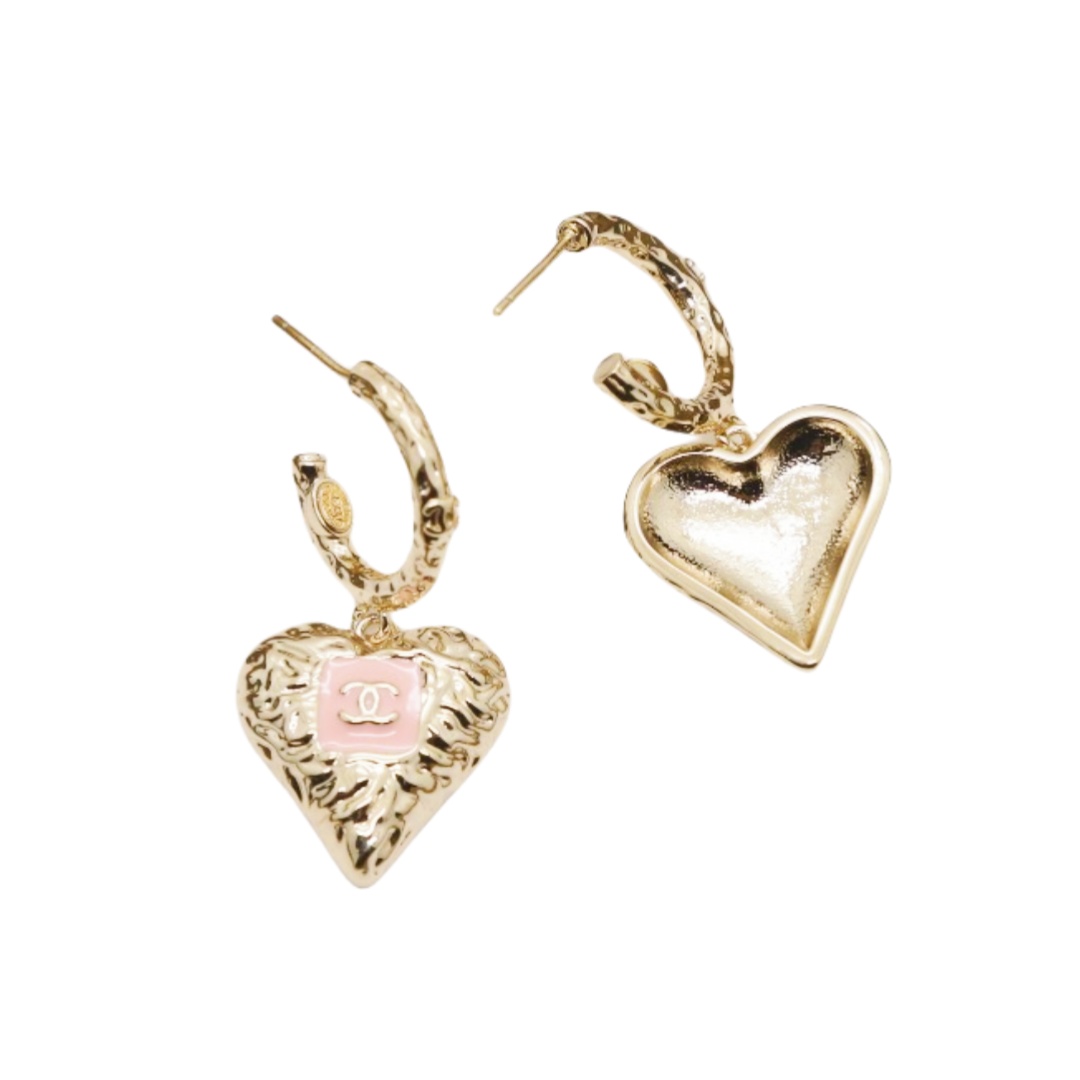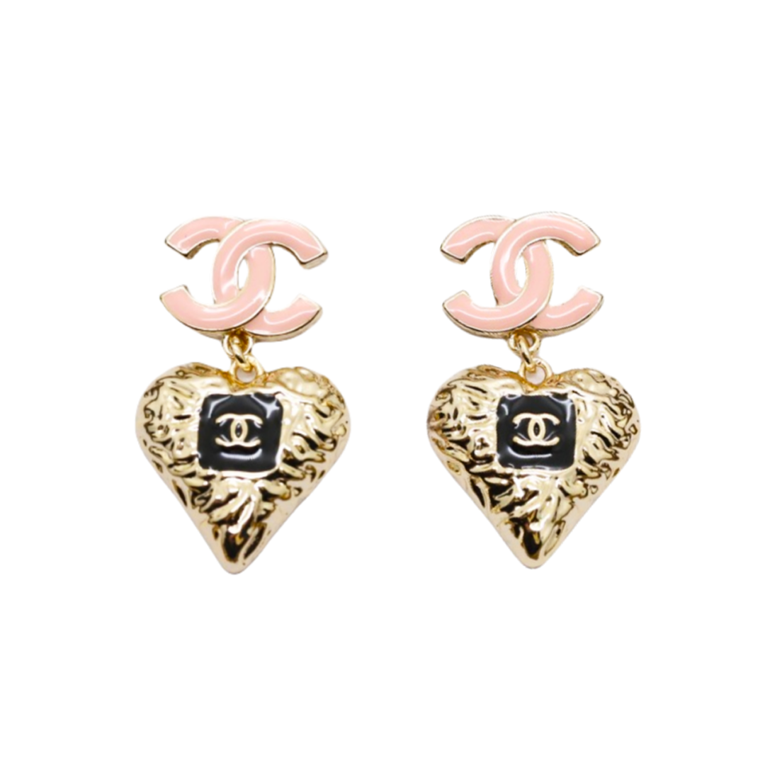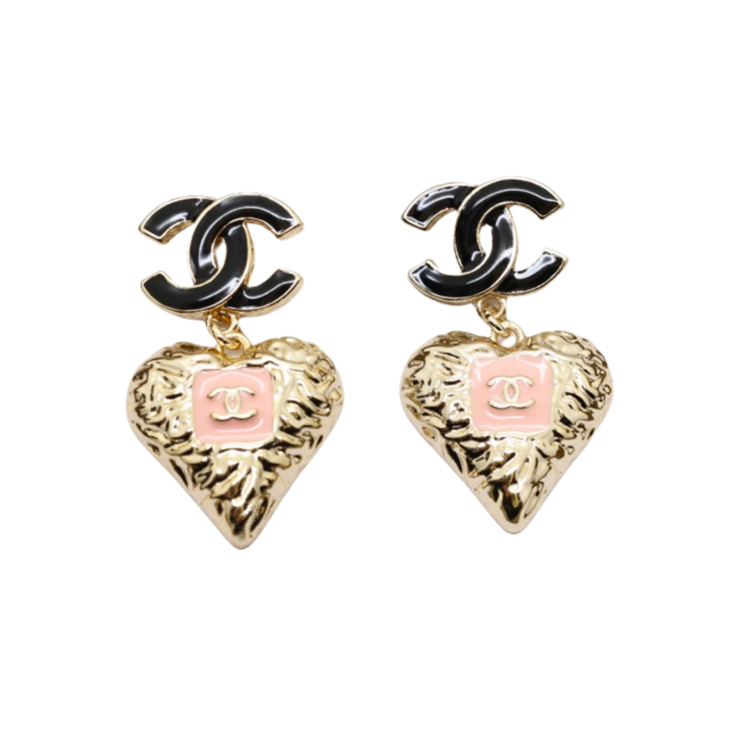 CCE167 Metal clover and crystal heart CC logo stud earrings