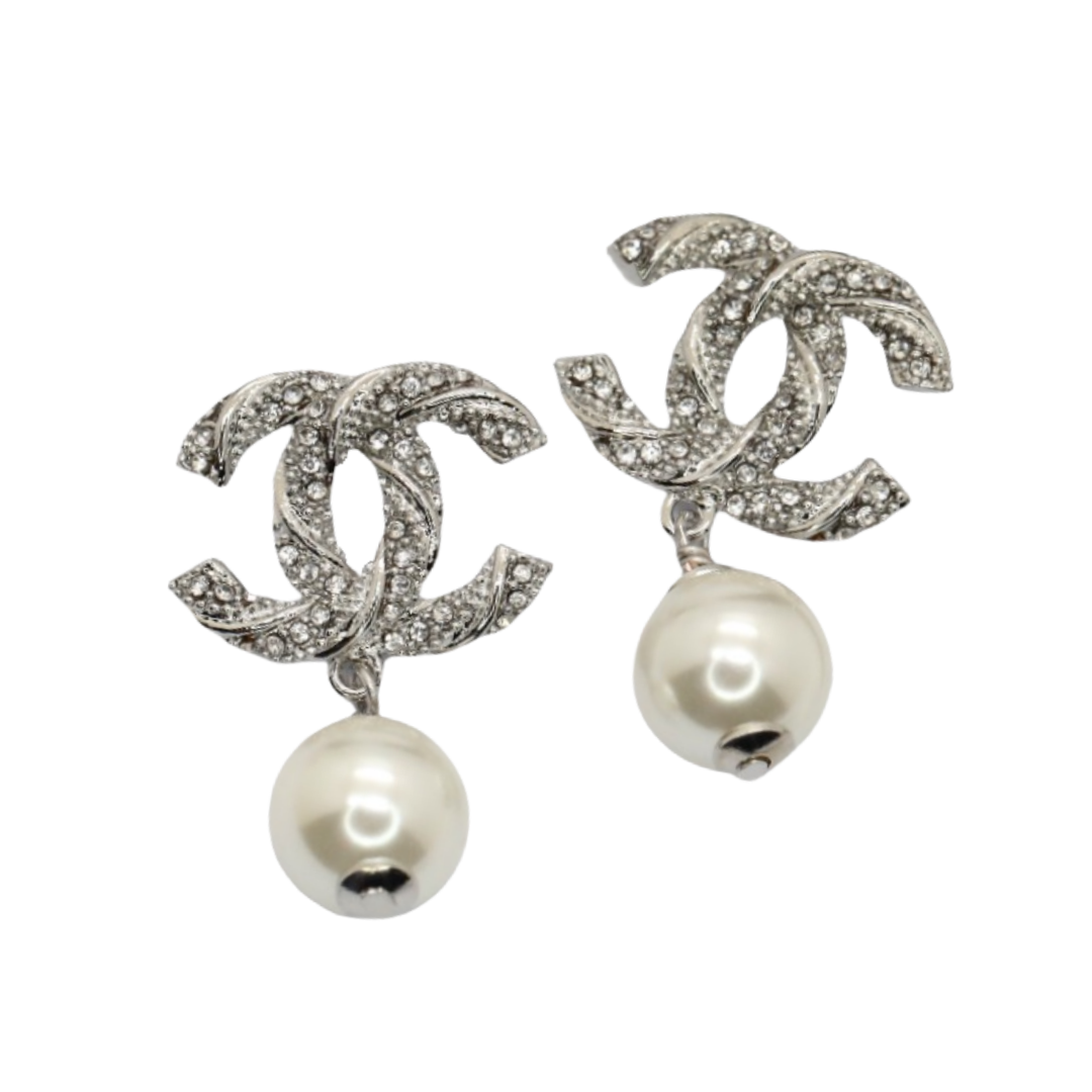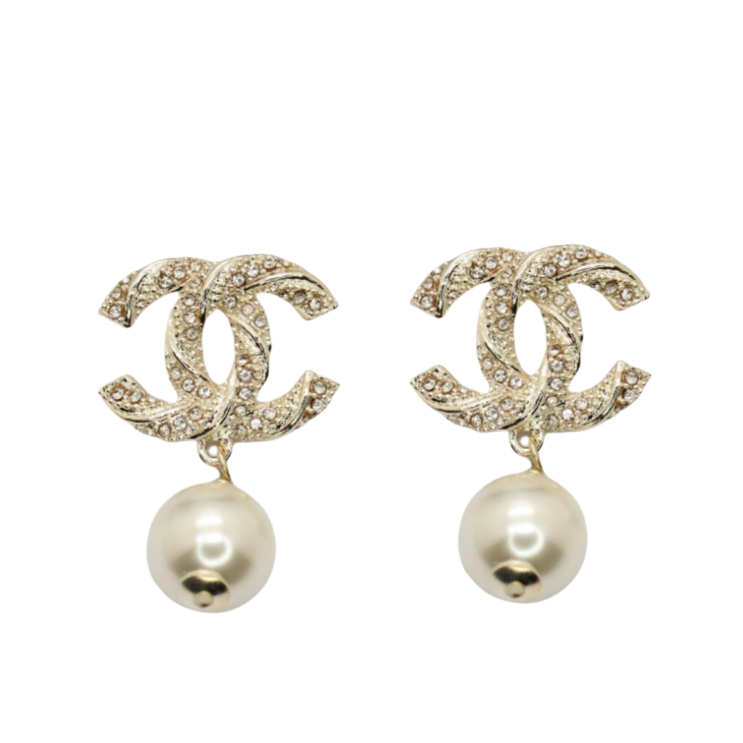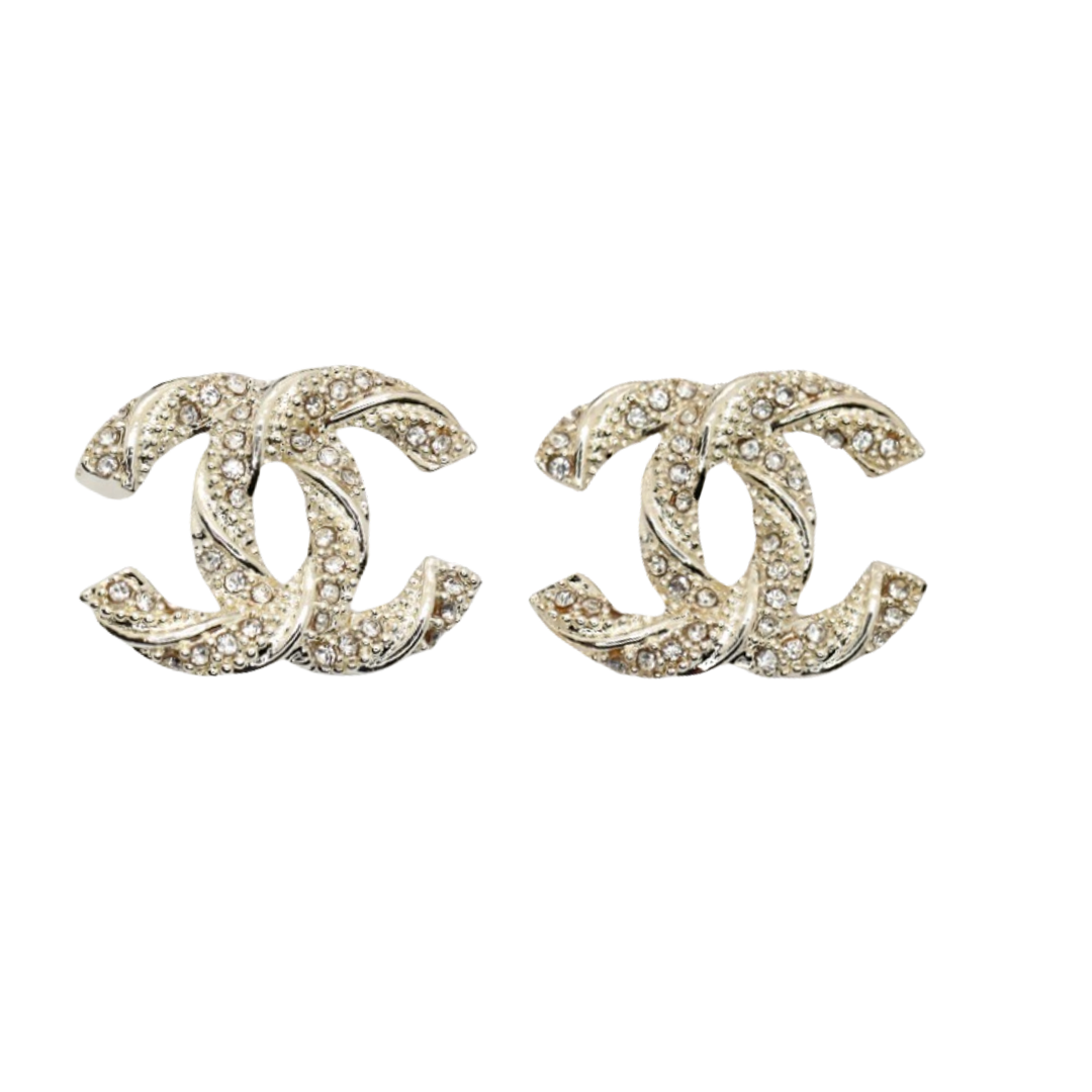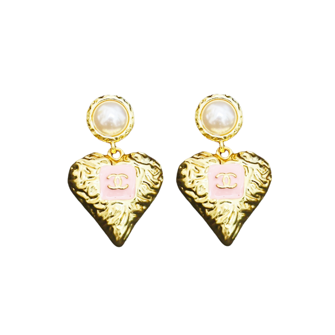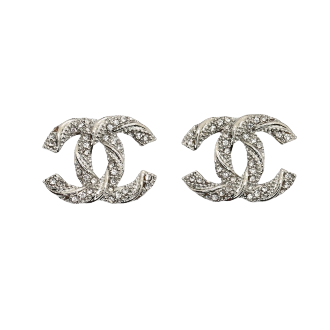 CCE167 Metal clover and crystal heart CC logo stud earrings