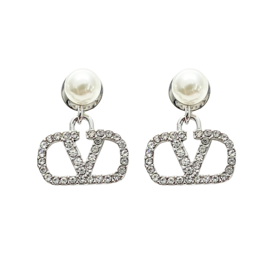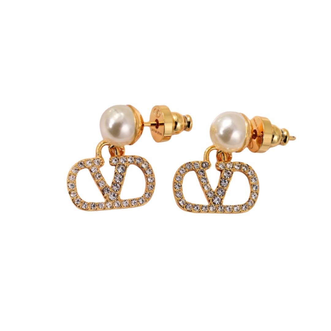 CDE177 Dior Metal Gold and gray crystal ball pearl earrings
