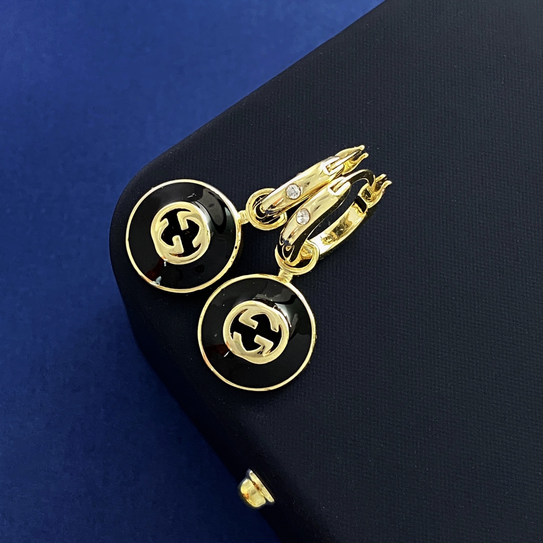 GGE139 Onyx gg logo drop earring