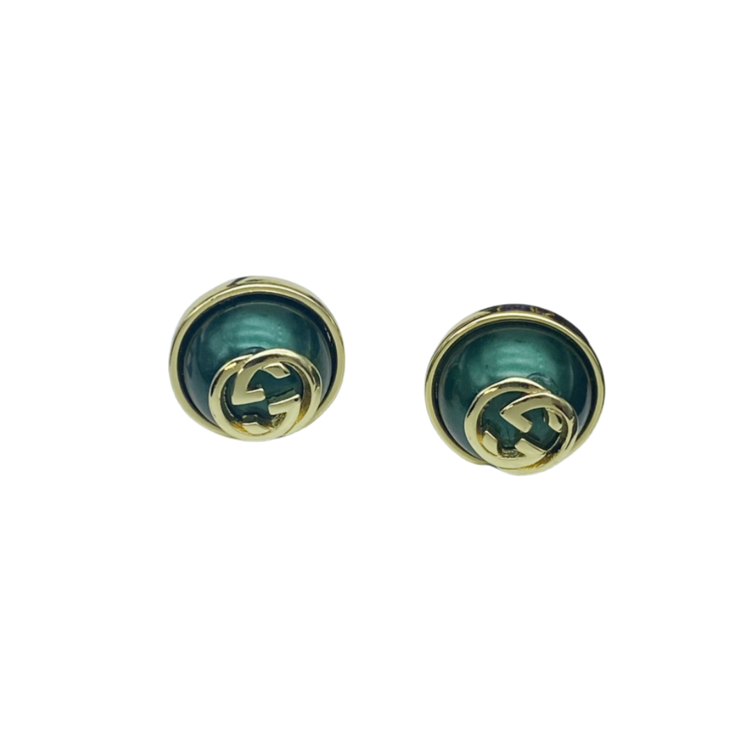 GGE140 Half Round bead GG logo stud Earrings