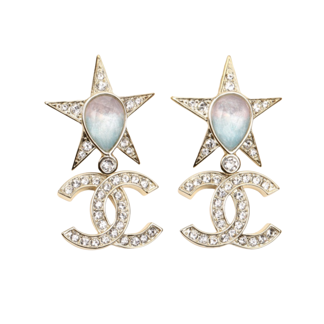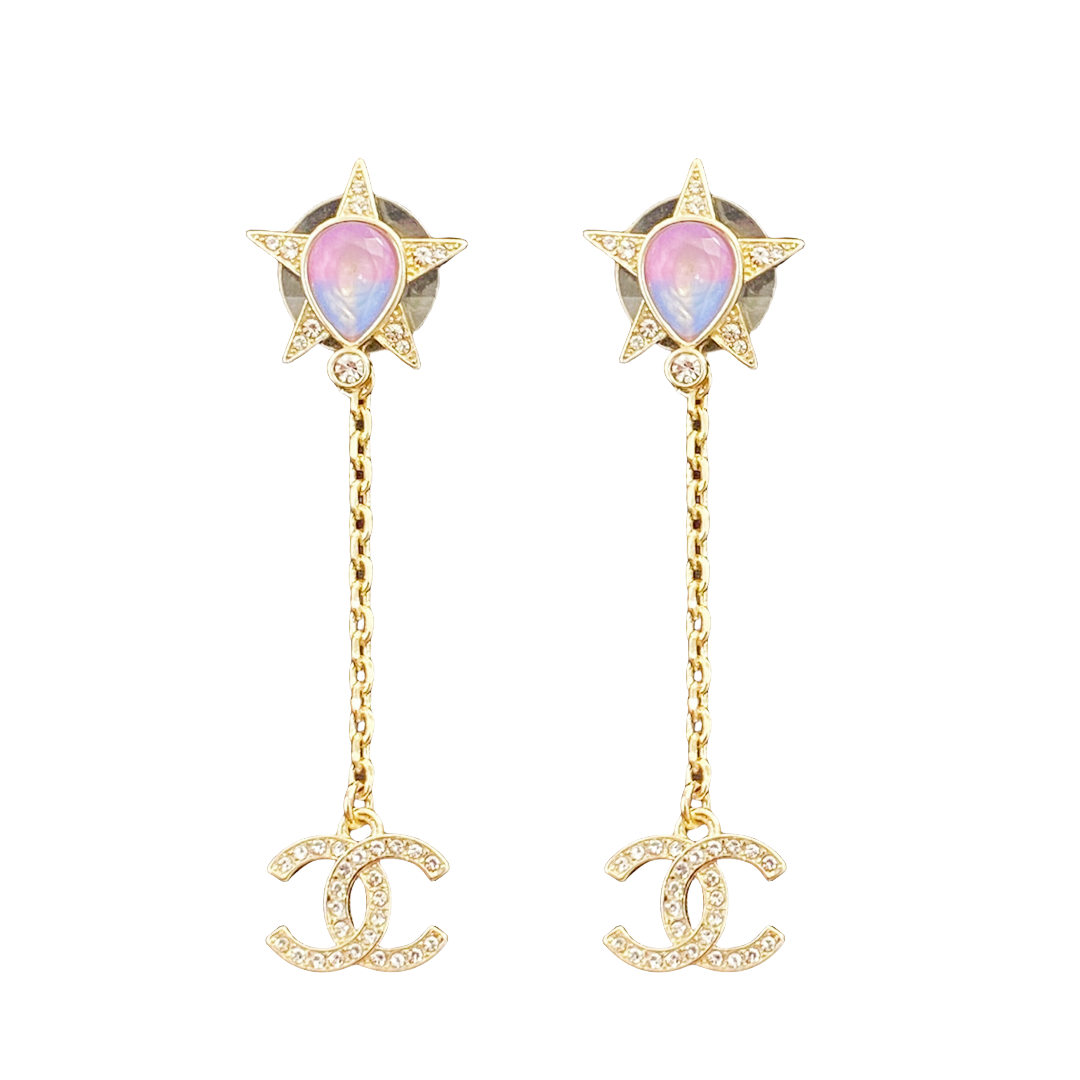 CCE048 Chanel Pink /blue /yellow acrylic star Perfume Bottle with crystal cc logo stud earring