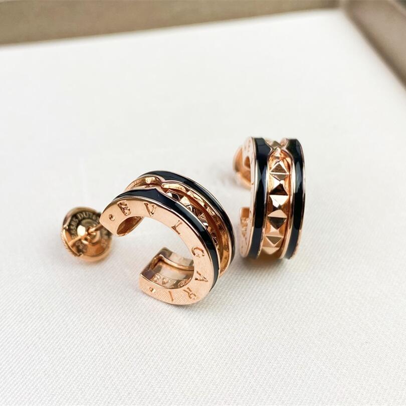 BGE027 3 motifs onyx Divas dream earrings rose gold