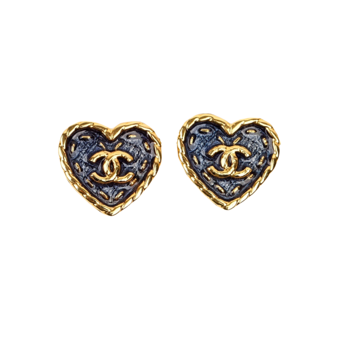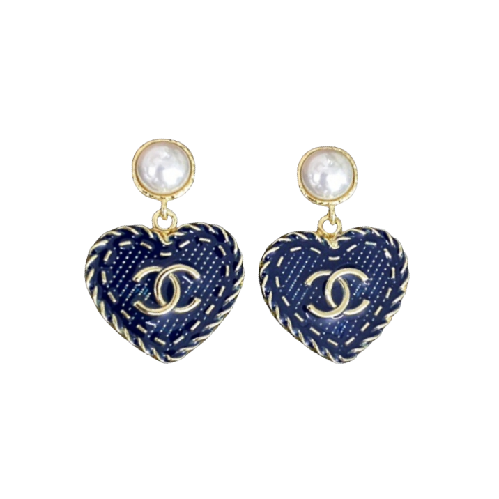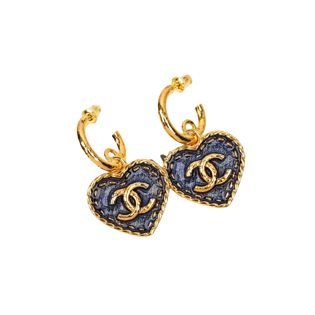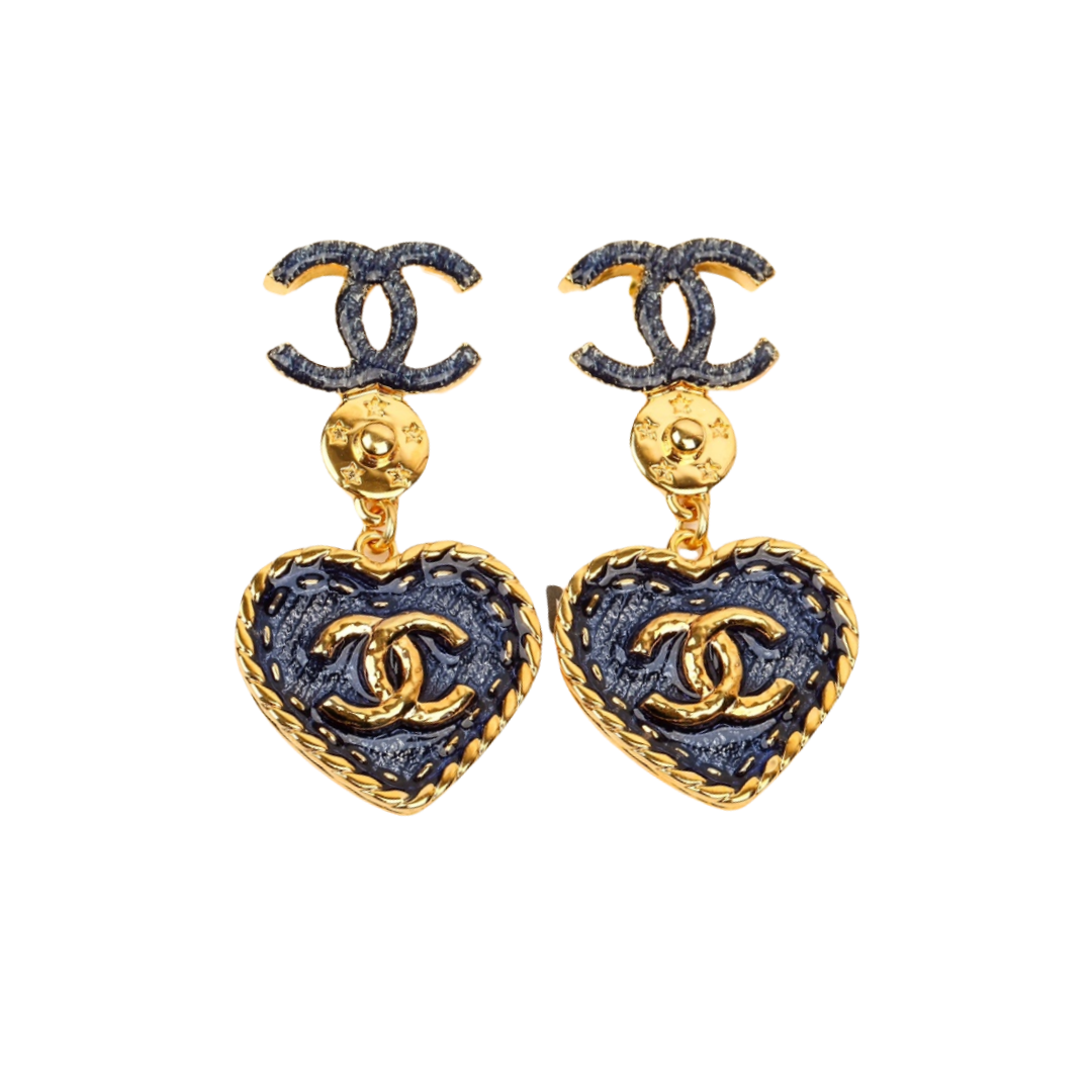 CCE585 Denim Blue Color 24P Heart shaped with CC logo earrings