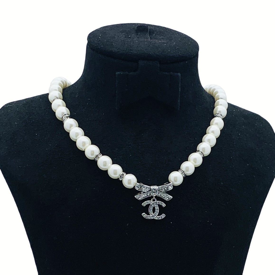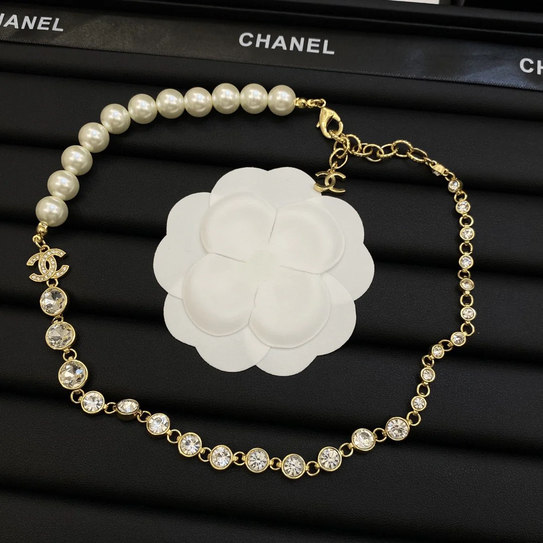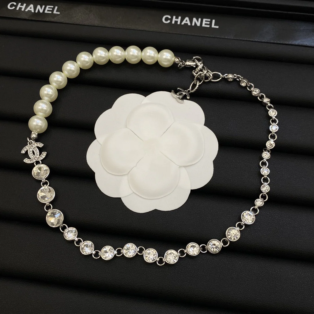CCN253 Metal chopin chain with Swarovski crystal CC logo Pendant Necklace