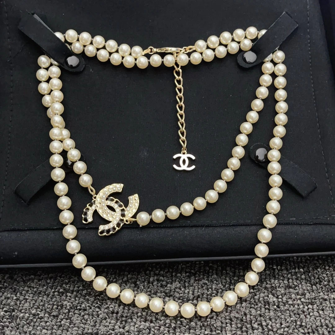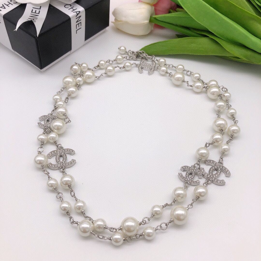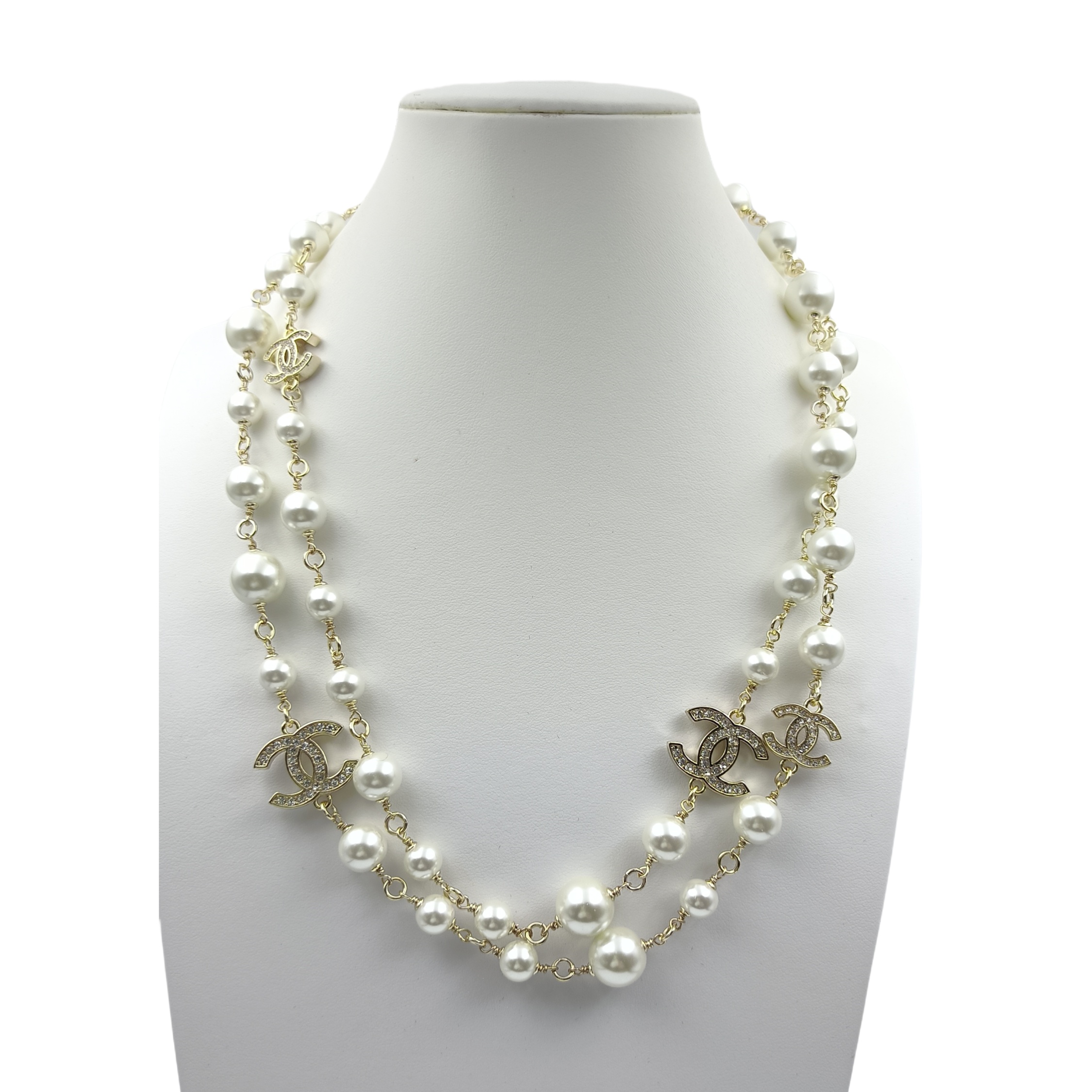 CCL228 100 Anniversary Long pearl sweater chain with CC logo Necklace