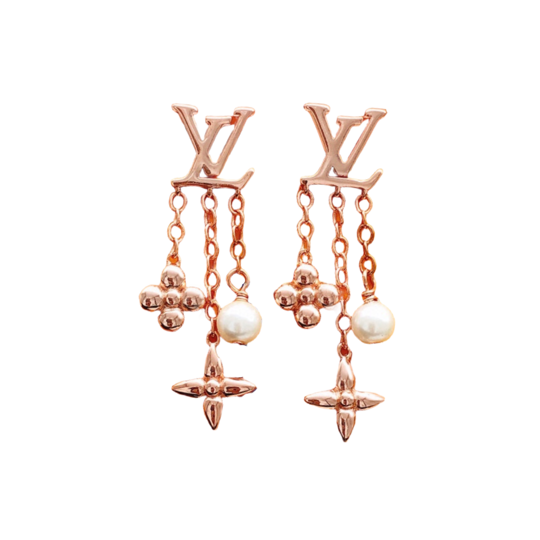 LVE123 Vuitton Pink Mother of Pearl Color Blossom Star & Sun Stud Earrings