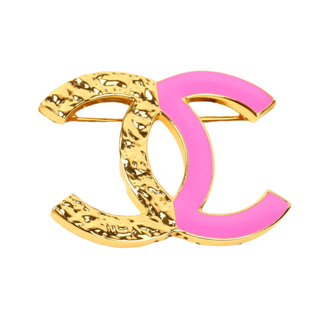 BCB200 24C Gold embossment and Pink/Black enamel Dual color CC Logo brooch pin