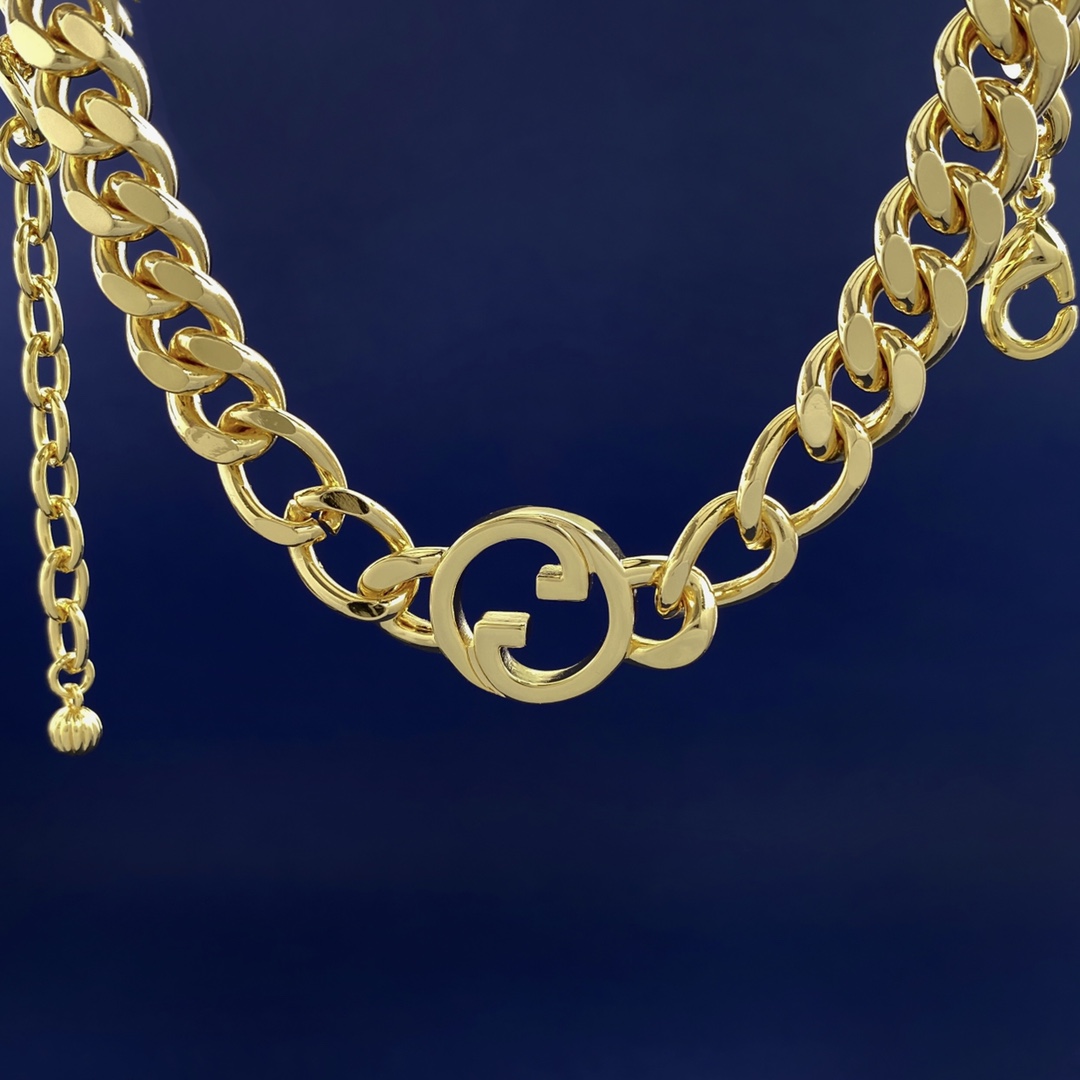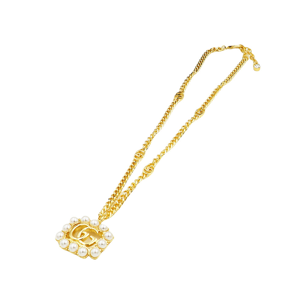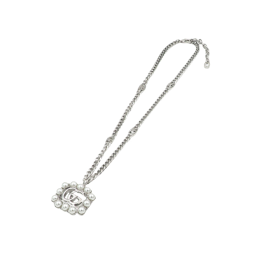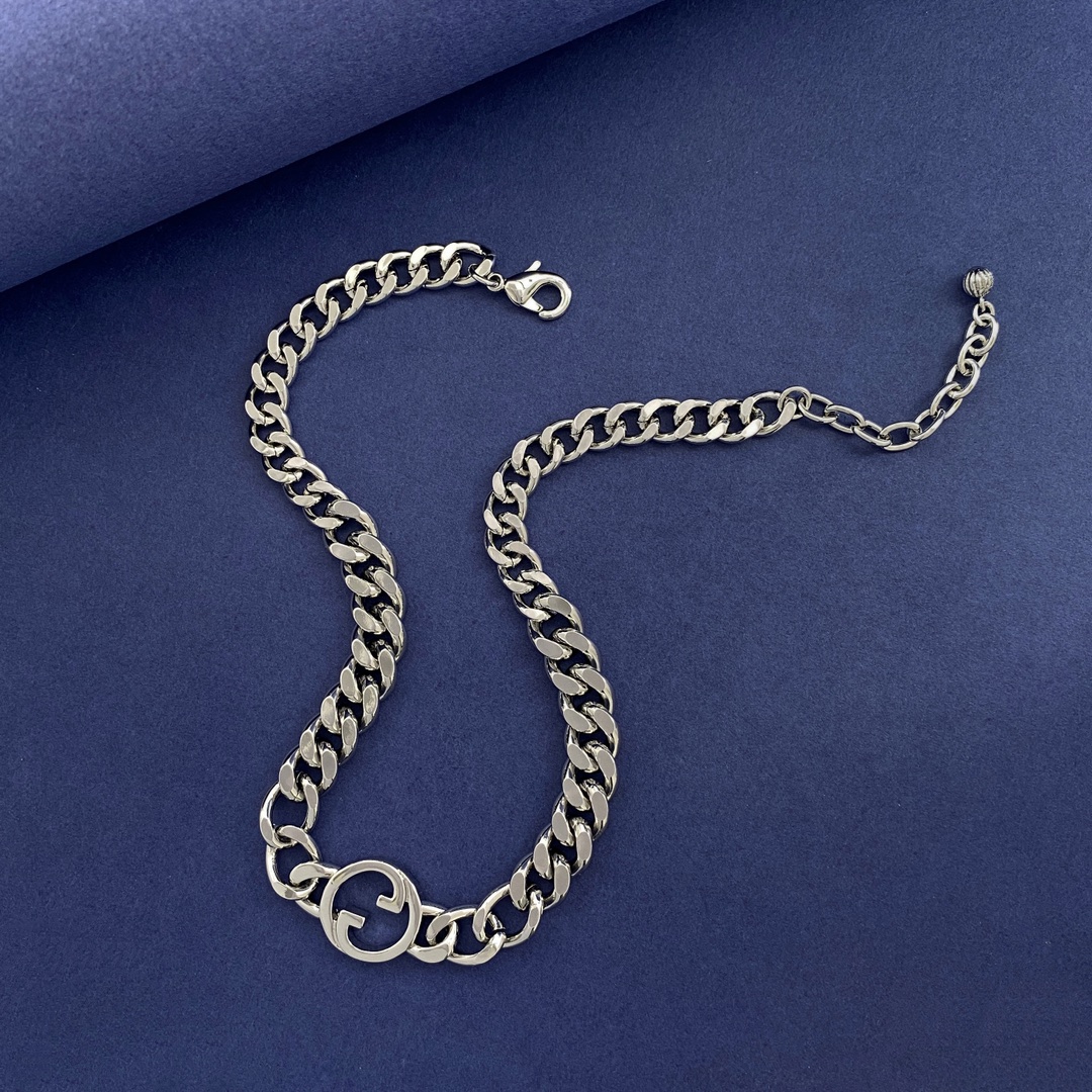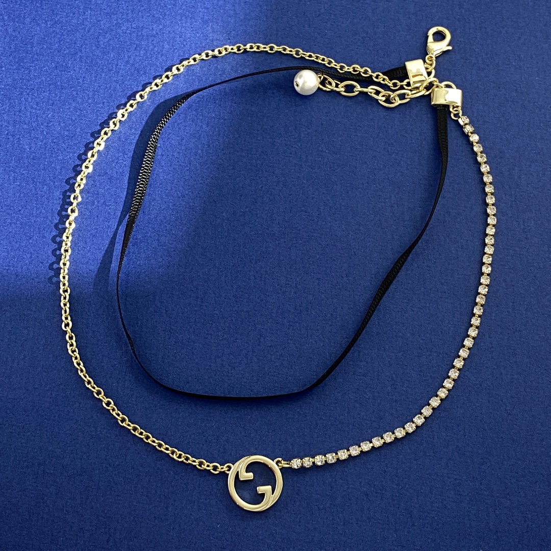 GGN050 Interlocking g crystal chain and Black silk rope double-deck necklace