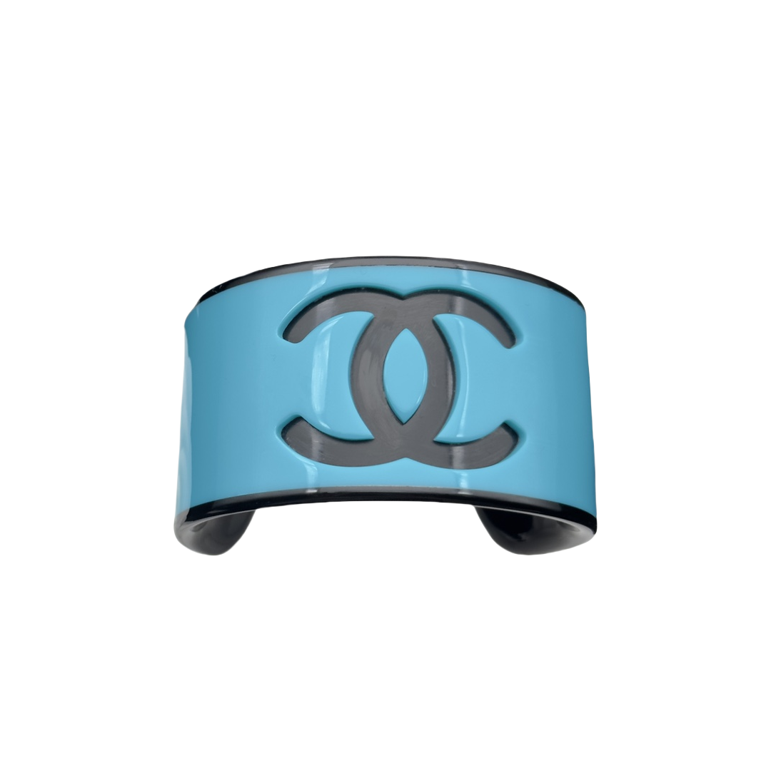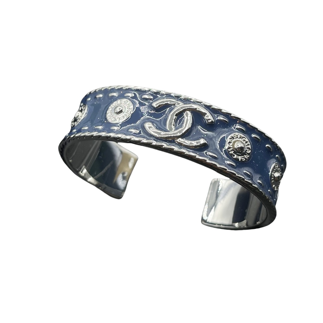 CCS103 24 Denim Blue CC logo with Engraved riveted gold coin Bangle Bracelet