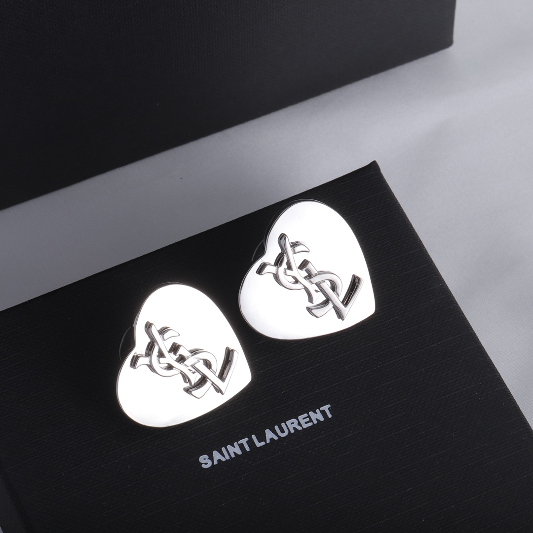 YYE038 YVES Vintage Gold Tone Heart Logo Stud Earrings