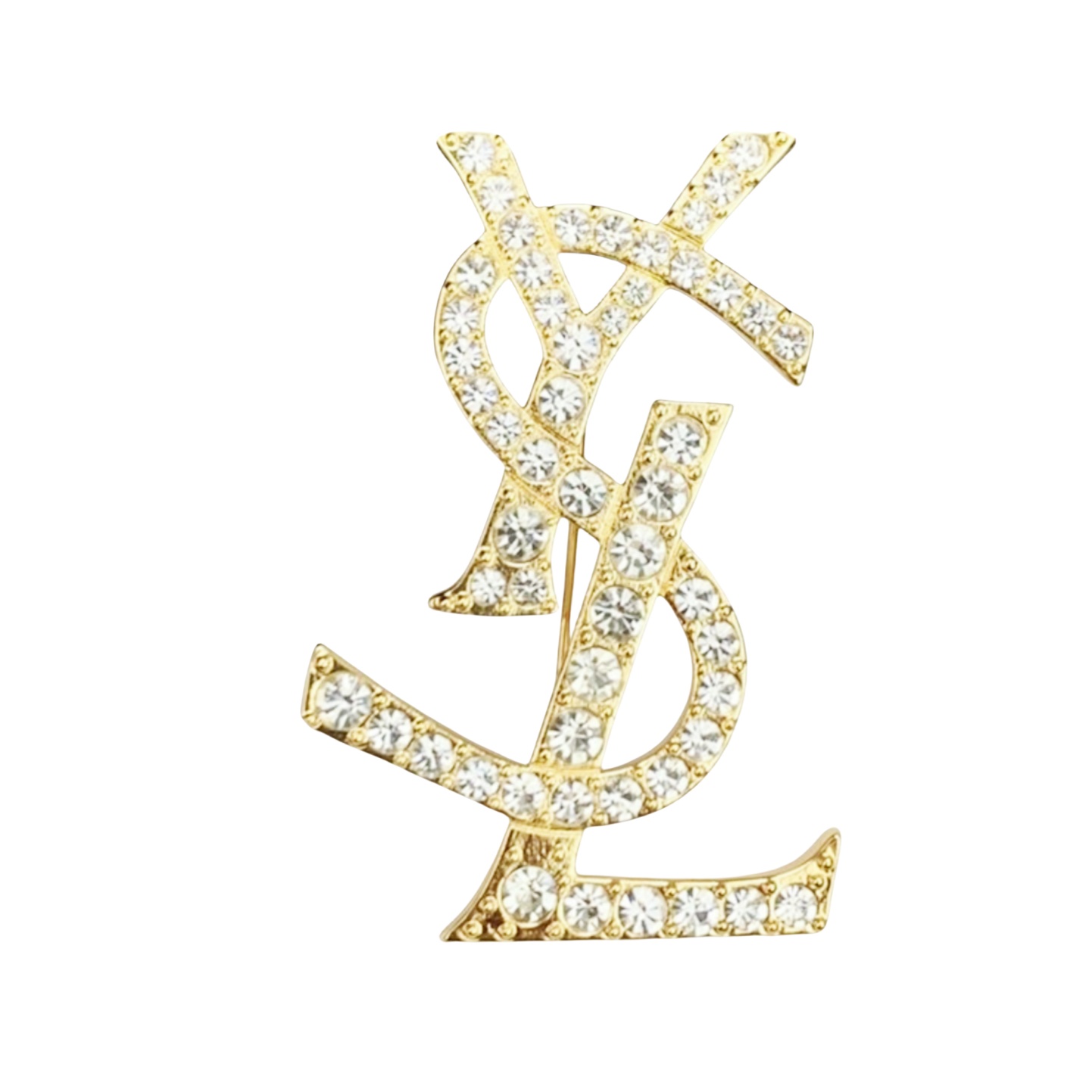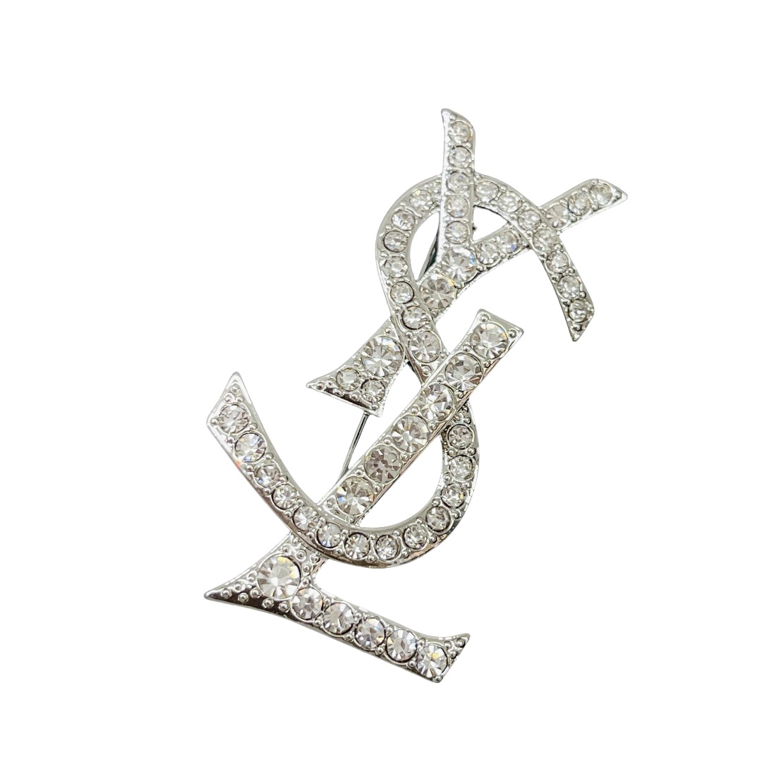 BYB050 YVES LSY LOGO Brooch pin in metal and rhinestone