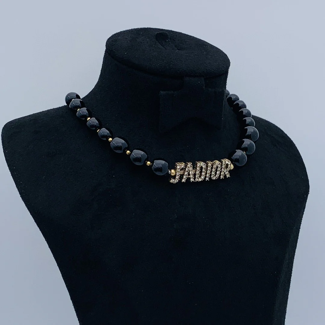 CDN110 High Quality CD Choker Necklace White Black Pearl