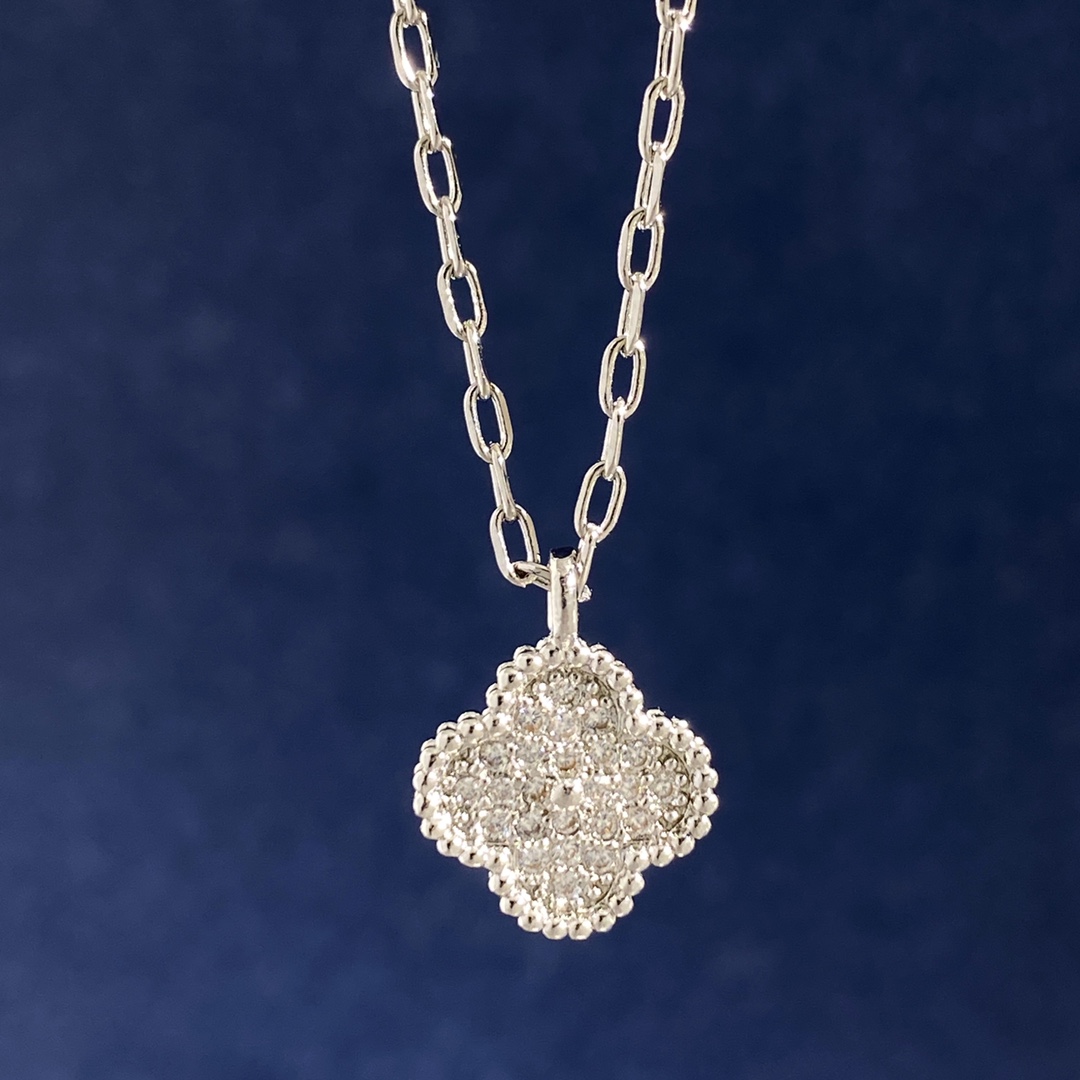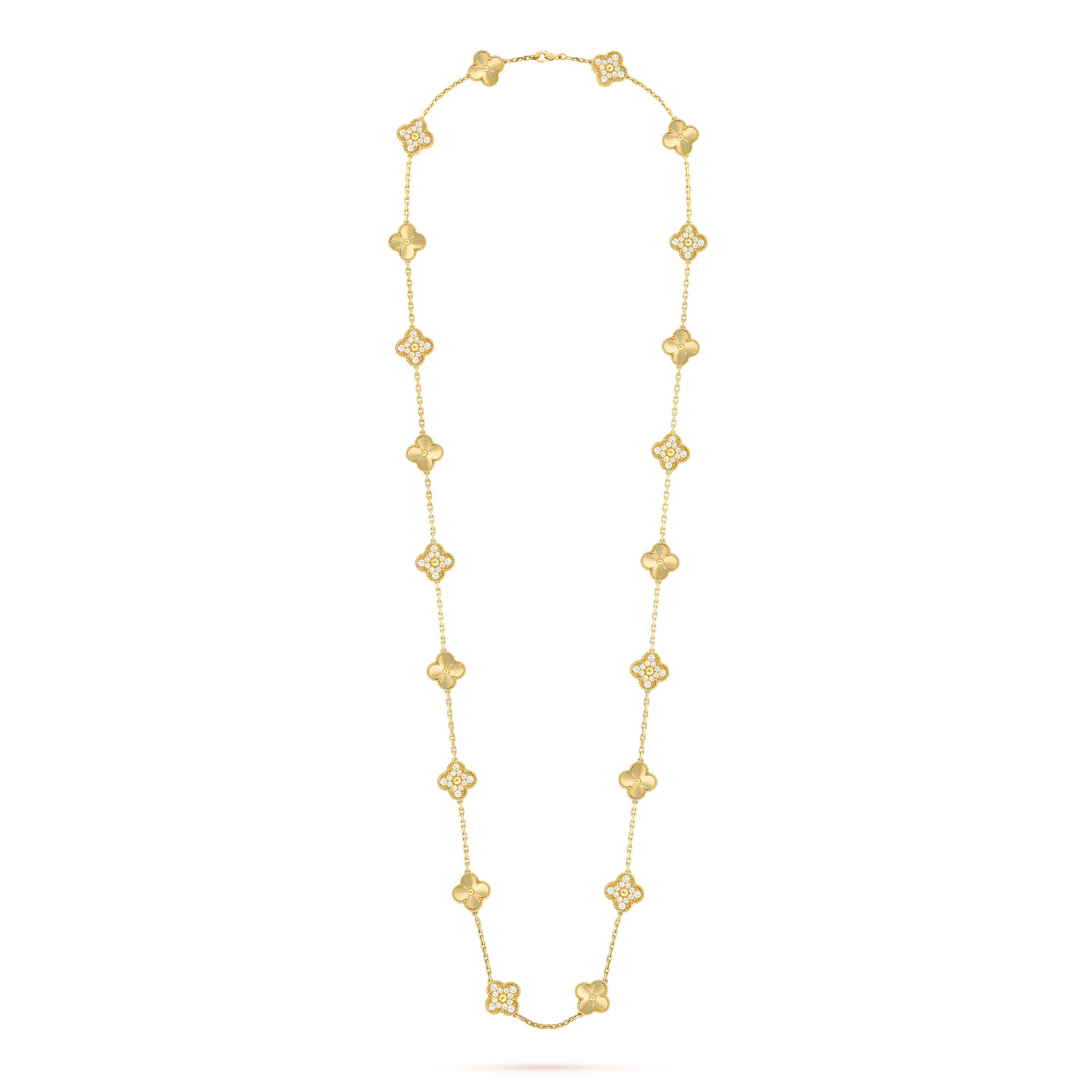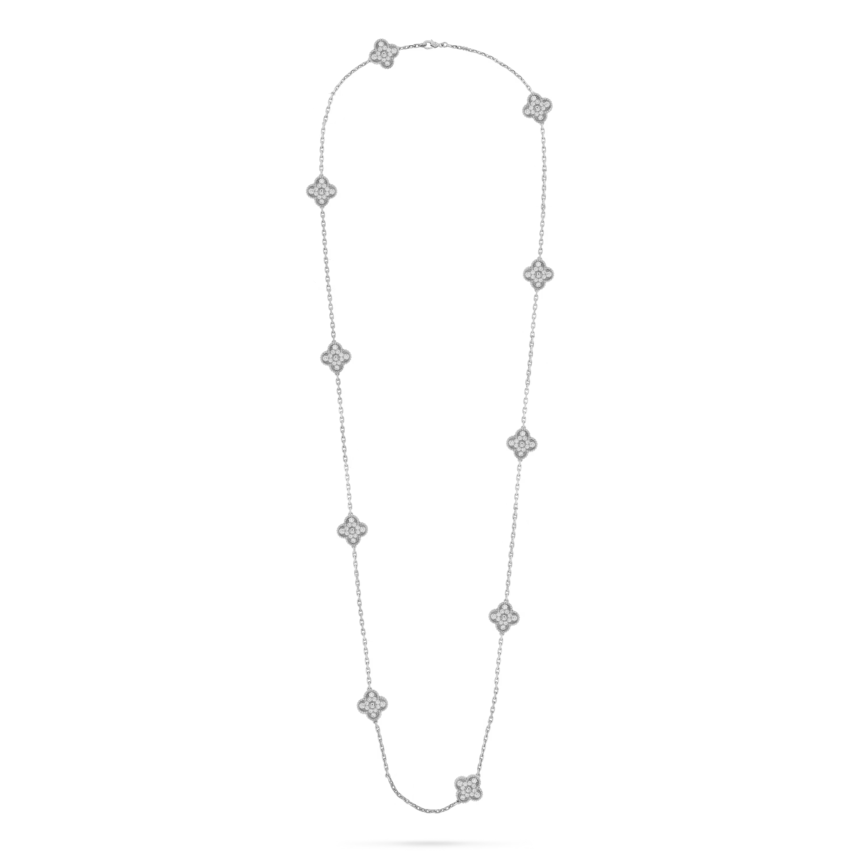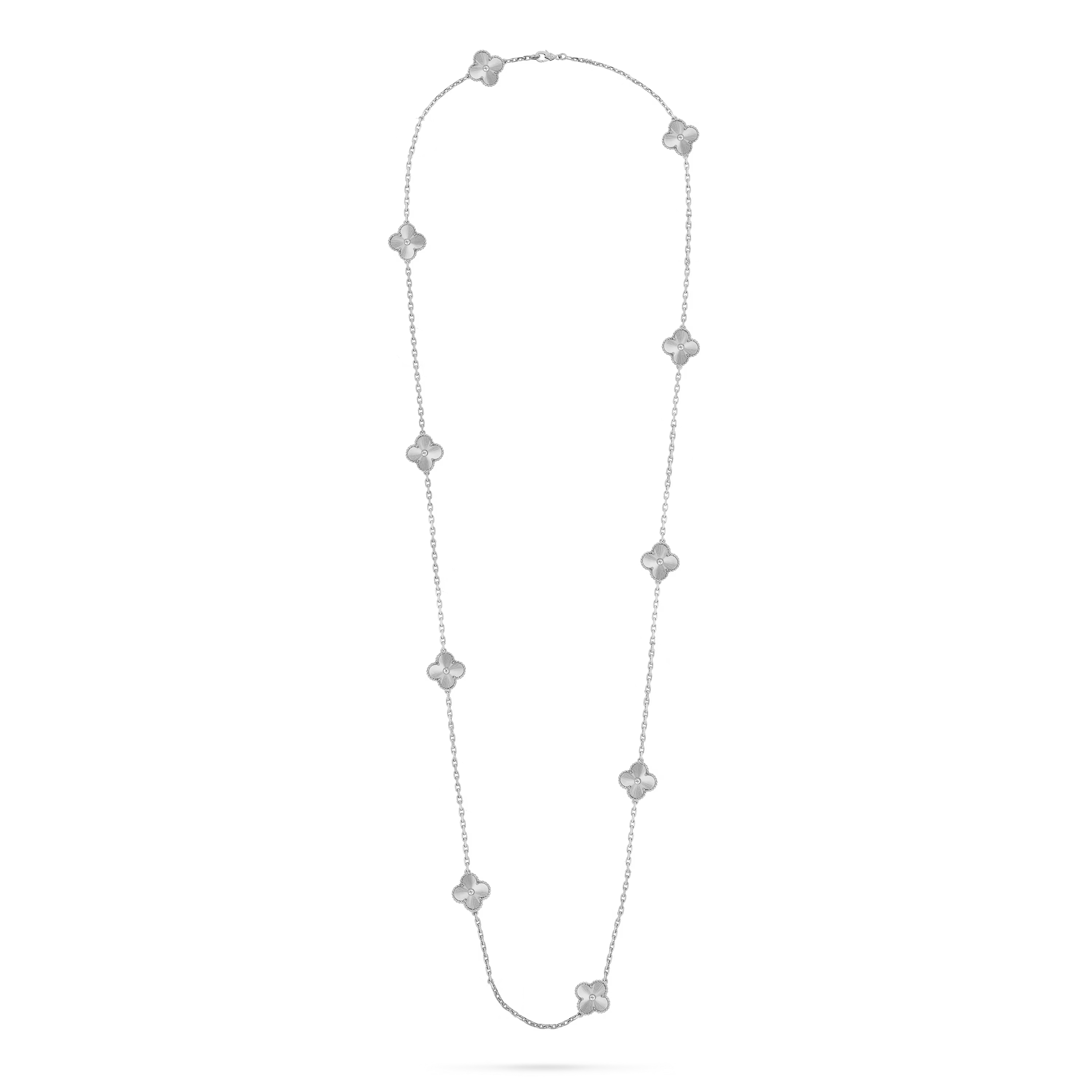 VCNV004 18k wite gold Pietersite Vintage Alhambra Long necklace 20 motifs