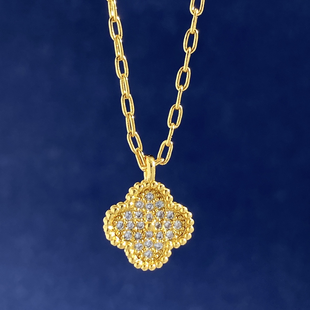 VCNV002 18k Gold Vintage Alhambra necklace 10 motifs Silver obsidian Gemstone