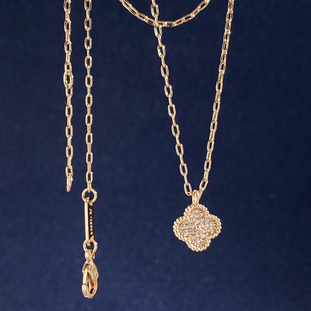 VCNV005 18K Rose Gold Silver Obsidian 20 Motifs Vintage Alhambra Necklace