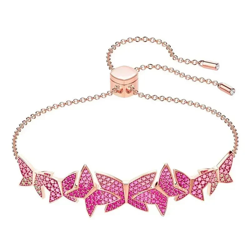 SVT002 Swarovski Pink crystal butterfly lilia y necklace and earrings bracelet