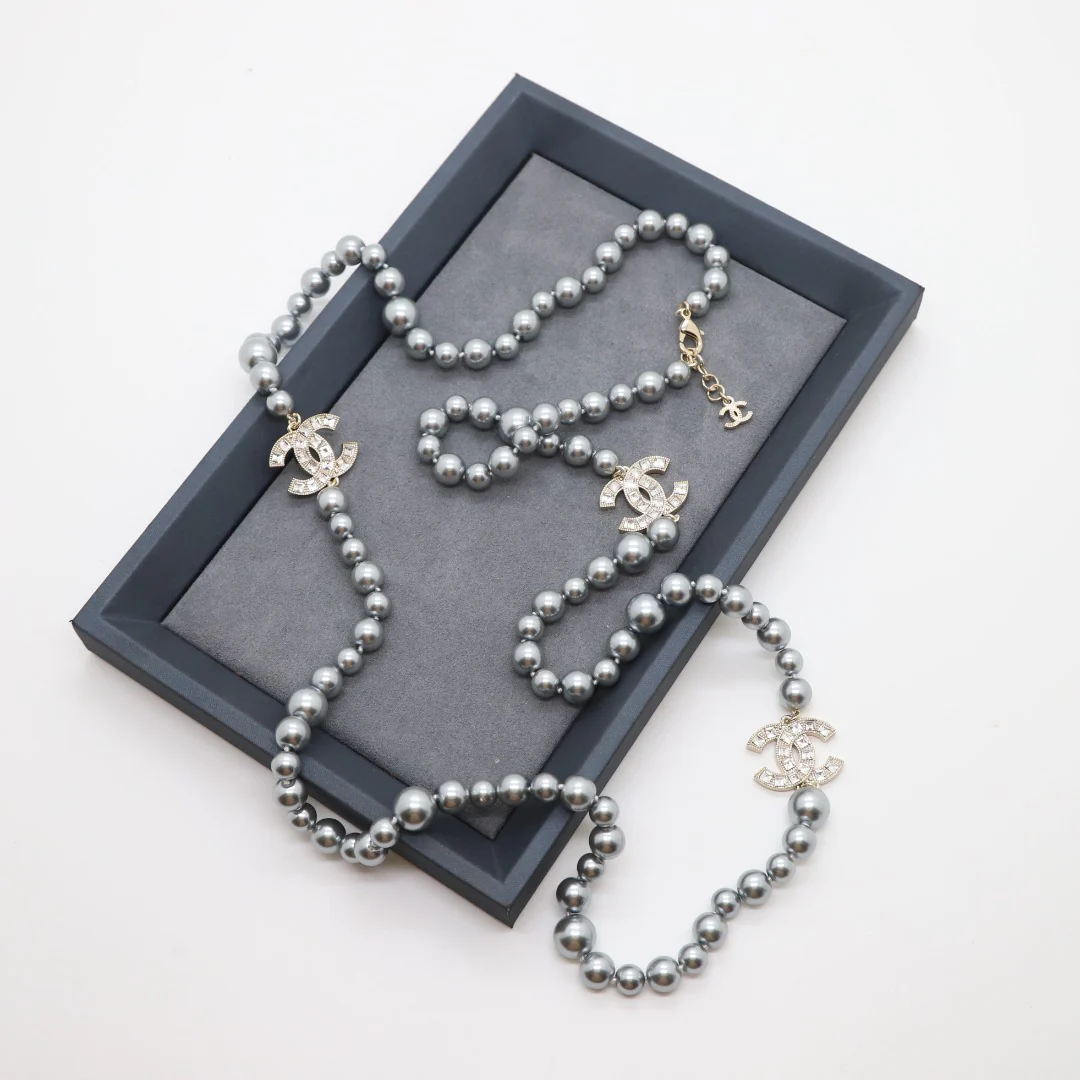 CCL025 High Quality CC Pearl Long Chain Necklace Pearl Sweater Chain