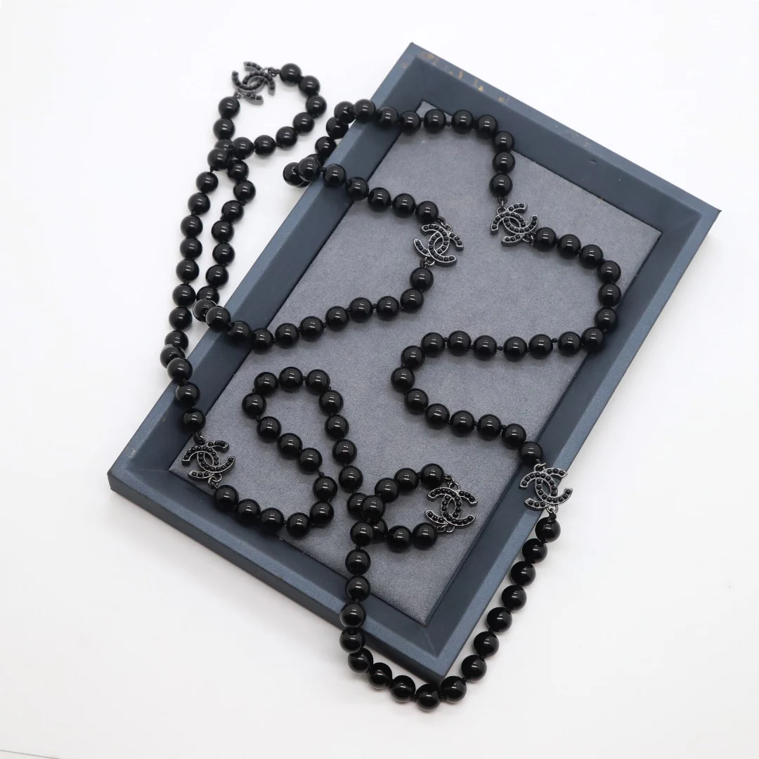 CCL011 High quality CC Black Pearl Long Chain Necklace Pearl sweater chain