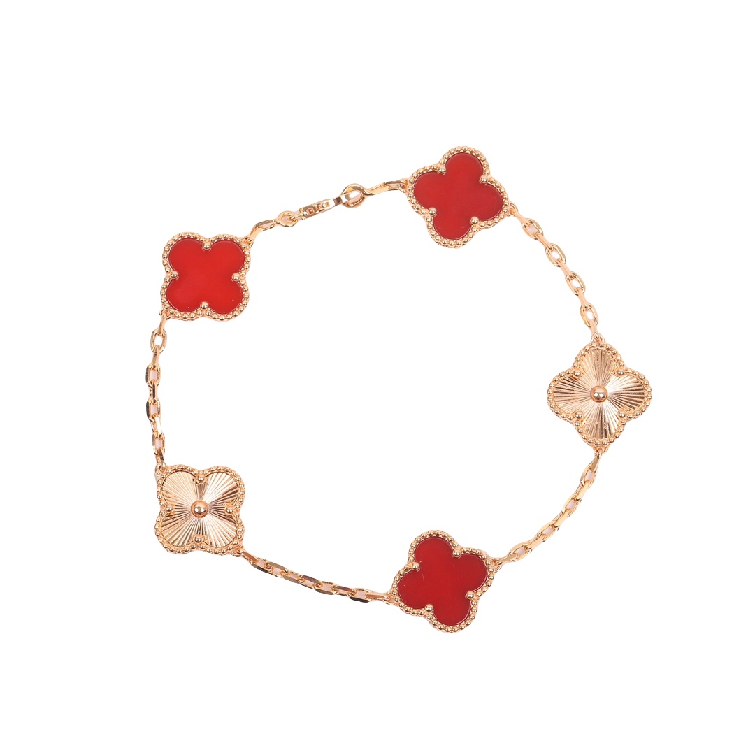 VCSV014 18K Rose Gold Red onyx Vintage Alhambra bracelet, 5 motifs